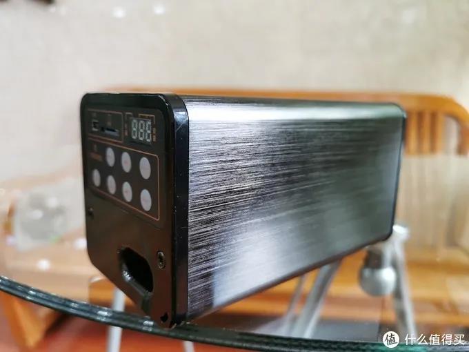 雖然體積不很很大,但是掂在手里還是挺有分量的。官方給出的凈重是0.73Kg,作為一款便攜式藍牙音箱,這個重量稍微有點大。但反過來想,一臺小小的藍牙音箱都能有這個重量,可見廠家是下足了料的,用心程度可見一斑。