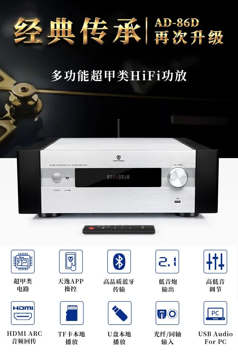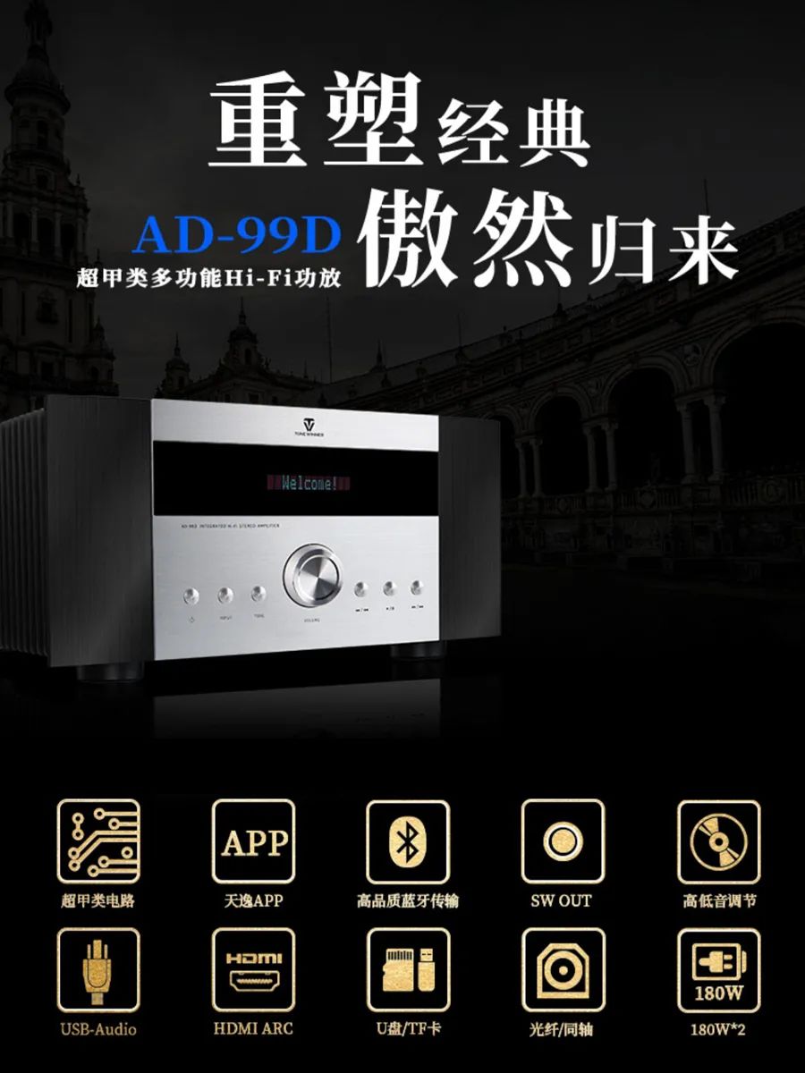 當前天逸品牌旗下產品品類豐富,涵蓋HiFi、家庭影院、卡拉OK三大類目,不斷保持新品更新速度。在Hi-Fi品類中,AD-2SE榮光依舊,仍是不少發燒友的心頭好;更有熱銷款AD-86D超甲類Hi-Fi功放,兼顧‘多功能’與‘高性價比’雙重優勢,為年輕一代發燒友創造更快捷、更高品質的舒適聽音感受。