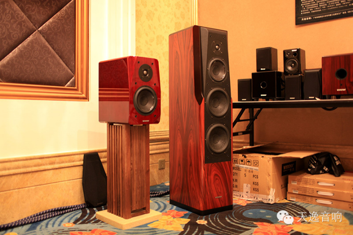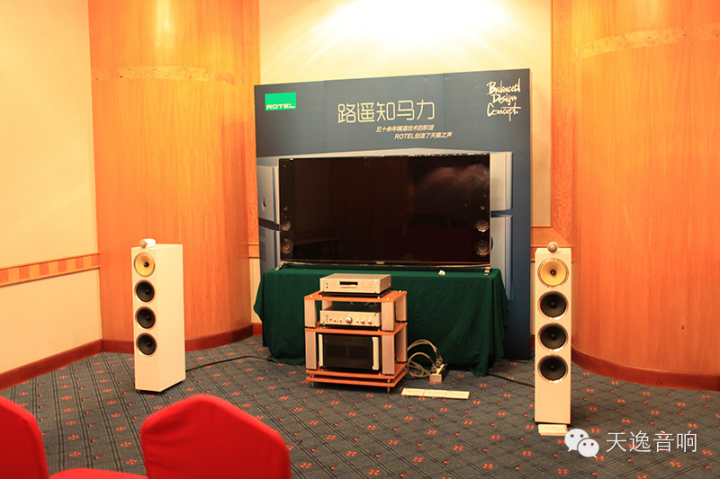 天逸的HI-FI展廳今年也不再是好評如潮的天逸老旗艦甲類功放AD-2SE當家的了,大廳前面是天逸2014年最新上市的六路電子分頻前后級新旗艦:天逸電子分音前后級AD-8PRE/AD-8A旗艦功放,搭配最新上市并專門為搭配該功放而研發生產的童笛一號電子三分音巨型旗艦機音箱。電子分音放大是解決音響高保真的終極利器,雖然成本較高,電路設計和工藝的確相對普通功放復雜不少,但帶來的好處就是聲音在全頻域的平衡感非常好。聲音的音質非常的細膩和圓融,音樂有一種非常難得的油潤和高貴的感覺!在沒有多少聲學處理的展廳中其實是不可能搭配調試出令人非常滿意的高保真音樂的。但這套六分頻電子分音的極品音響,是我多年來在展會上聽到過的最滿意的高保真音樂聲。