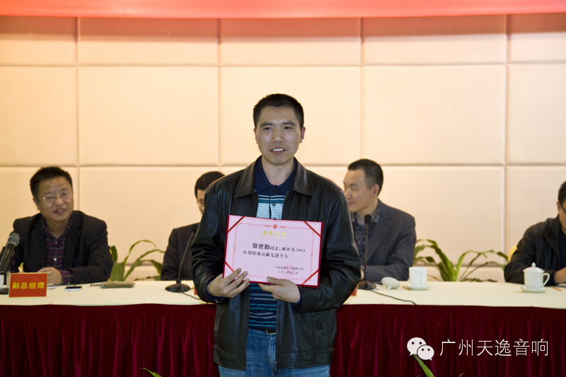圖三:公司法人兼總經(jīng)理李智先生在大會(huì)上進(jìn)行了重要的講演,制定了2014年度公司的總體戰(zhàn)略方針和奮斗目標(biāo),并一再重申了天逸公司的企業(yè)宗旨就是要堅(jiān)持以“高品質(zhì)”、“高科技”、“高品位”,的質(zhì)量方針,鑄造中國音響精品第一品牌。大力提倡科技興廠、質(zhì)量興廠、服務(wù)興廠,始終堅(jiān)持標(biāo)準(zhǔn)化、規(guī)范化、精品化、人性化、規(guī)模化!為廣大專業(yè)音響用家提供我們更穩(wěn)定、更可靠、更先進(jìn)、更耐用、更好聽、更專業(yè)的音響科技成果……圓我們躋身國內(nèi)音響行業(yè)一線品牌、世界知名品牌的天逸夢(mèng)想!