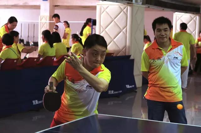 本屆運(yùn)動(dòng)會(huì)上,天逸公司的靈魂人物----總經(jīng)理李智先生也參與其間,下圖是他正在比賽兵乓球的場(chǎng)景: