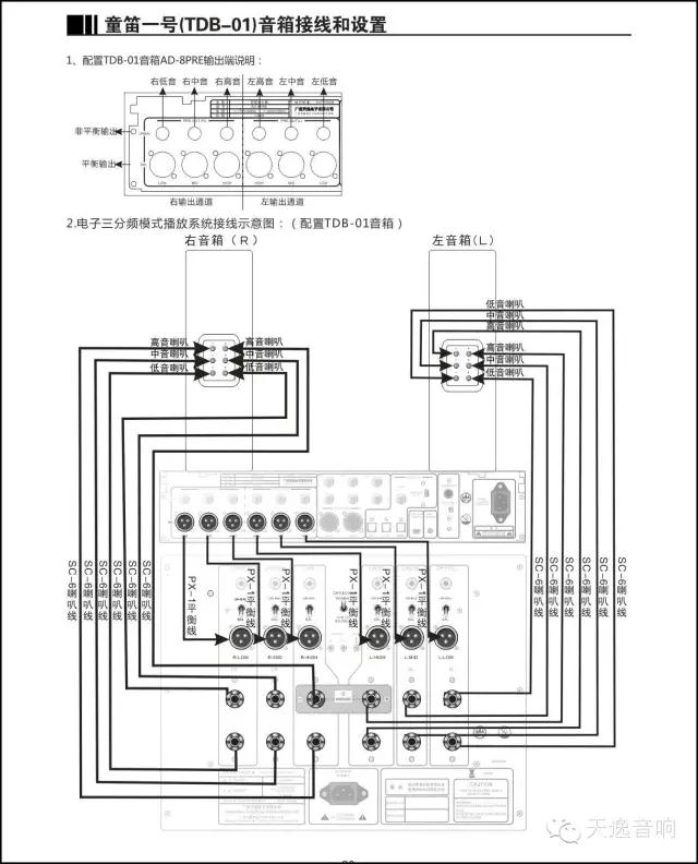 二:三分頻電子分音接線玩法:即搭配指定的天逸高端四單元三分頻大型落地式音箱童笛一號音箱;