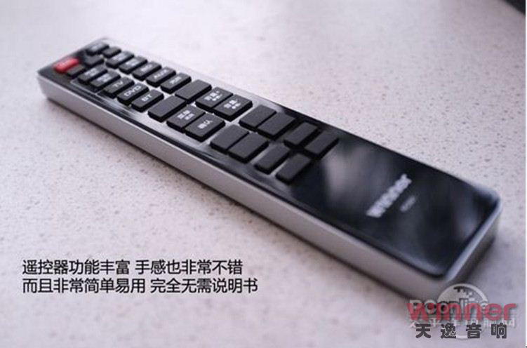 遙控器手感非常好,不過還有很多按鍵沒有定義到,實際上音箱的控制非常簡單,無需說明書,并且也無需太多按鍵。