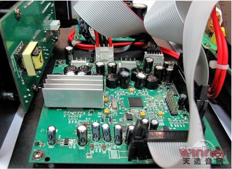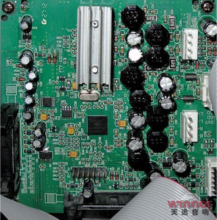 當(dāng)來至音源的音頻或數(shù)字信號進入到該機的信號處理中心時,將在這里完成相應(yīng)的AD轉(zhuǎn)換和DSP聲場處理及電子分頻放大,這一級是該機的核心技術(shù)所在,其芯片為來至美國Intersil公司旗下的D2Audio公司,是一家專門致力于為消費電子、汽車以及專業(yè)音頻產(chǎn)品等應(yīng)用領(lǐng)域提供數(shù)字音頻功率放大器設(shè)計的創(chuàng)新領(lǐng)先廠商,是全球獨家擁有智能數(shù)字音頻功率放大器技術(shù)的廠商。其芯片的科技含量非常高,博得了全球眾多著名音響生產(chǎn)廠家包括POLK AUDIO等等的青睞。此次采用的該芯片為:D2-45X57-QP DSP處理器,是集DSP多種音效、以及全頻域電子分音、EQ調(diào)整、中高頻功率放大等等為一體的高科技音響處理芯片。