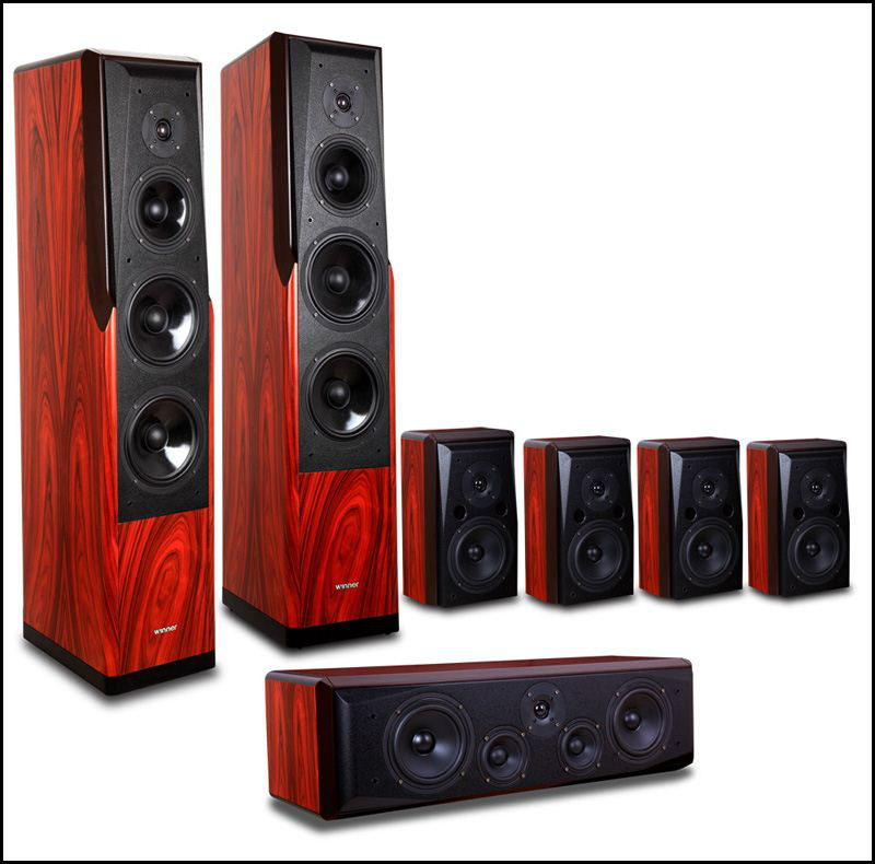 為方便使用者的需求選擇,該套音箱可以分別選購5聲道或7聲道,配合天逸高檔的SUB-12(12寸)的有源低音炮,組成一套效果十分美妙和震撼的高清家庭影院音箱系統。