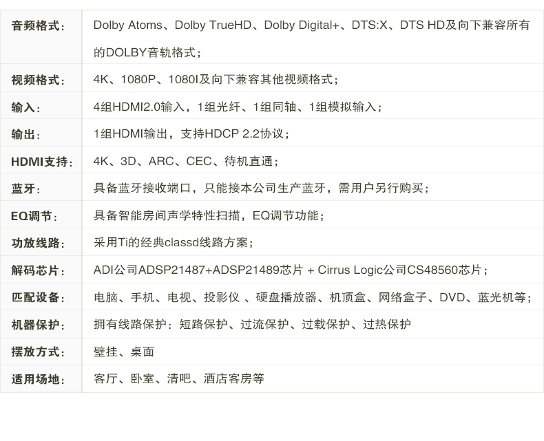 它采用杜比全景聲5.1.2的聲道配置,共內(nèi)置了右、中、左及左右環(huán)繞、左右反射式頂置,超重低音共八個聲道、總共12只喇叭,并且具備25W×7+100W(重低音,RMS)的強勁功率,它能營造劇院般全方位包圍感的全景立體聲,并能重現(xiàn)好萊塢大片宏大震撼的聲音場面,強勁震撼的低音能帶給你非常刺激的感受,讓你在家里也能有電影院里的沉浸式聲畫感受。
