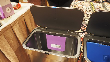 美國智能家居廠商Simplehuman在CES展會上展出Sensor Can智能垃圾桶。這款垃圾桶可以聲控,只要你對它說聲“垃圾桶開開”(open can)或者“芝麻開門”(open sesame),垃圾桶蓋就會自動打開。對它揮手也可以打開桶蓋。