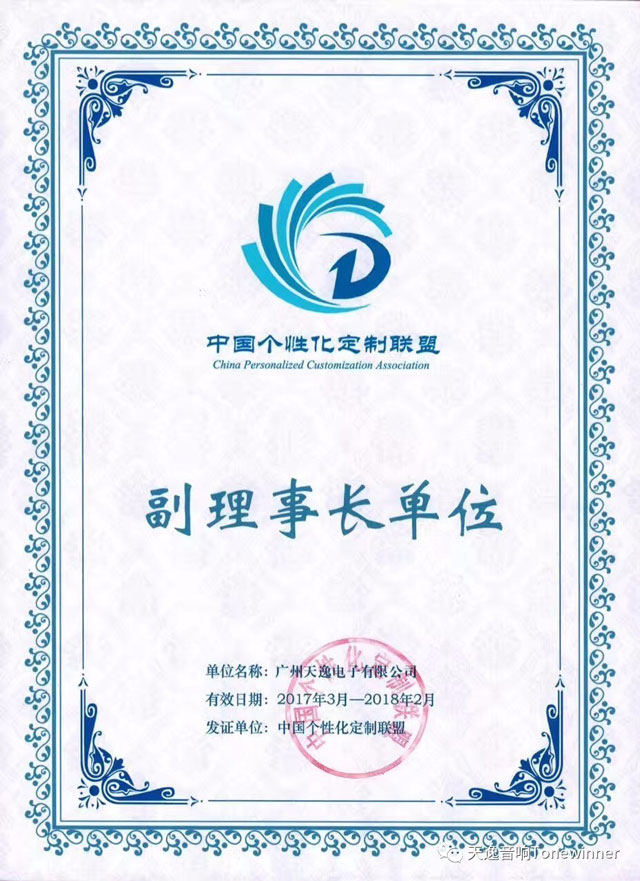 廣州天逸電子有限公司成為《中國(guó)個(gè)性化定制聯(lián)盟》副理事長(zhǎng)單位