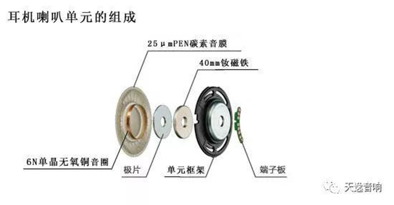 作為耳機的核心,揚聲器在耳機整個工作過程中起到舉足輕重的作用。動圈式揚聲器由四大部分組成,由外及里分別是:喇叭框架、振膜、音圈、永磁體。它的工作原理可以理解為:當我們使用耳機時,音圈獲得電流,從而形成磁場,會懸浮于下方的永磁體,根據不同音頻信號電流則發生改變,通過切割磁感線原理,驅動了振膜,振膜則推動了前方的空氣,最終產生了聲波。