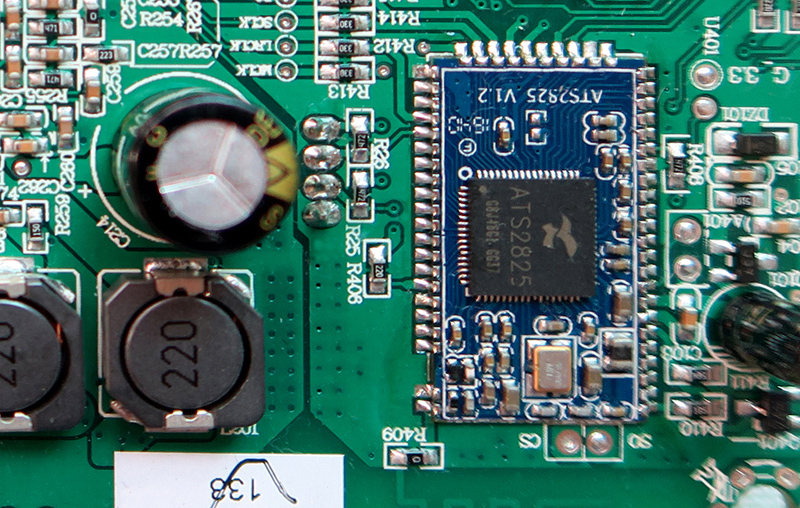 該機最重要的藍牙處理芯片采用了炬芯旗艦藍牙音頻芯片ATS2825。ATS2825是針對中高端藍牙市場設計的高性能藍牙V4.2雙模藍牙音頻解決方案Soc,高度集成MCU、DSP和RF在一顆單芯片中,體積雖小但內功深厚,在保證高品質音樂播放的同時仍保持低功耗的特點。