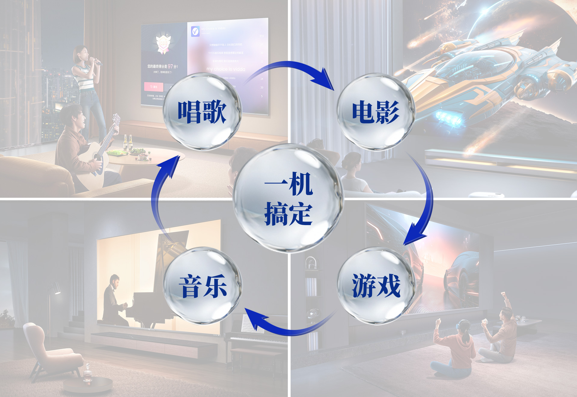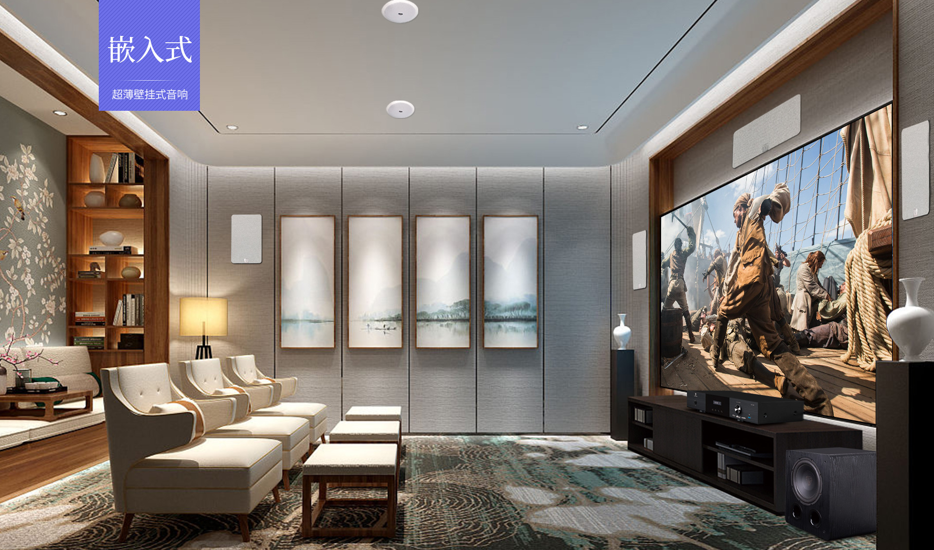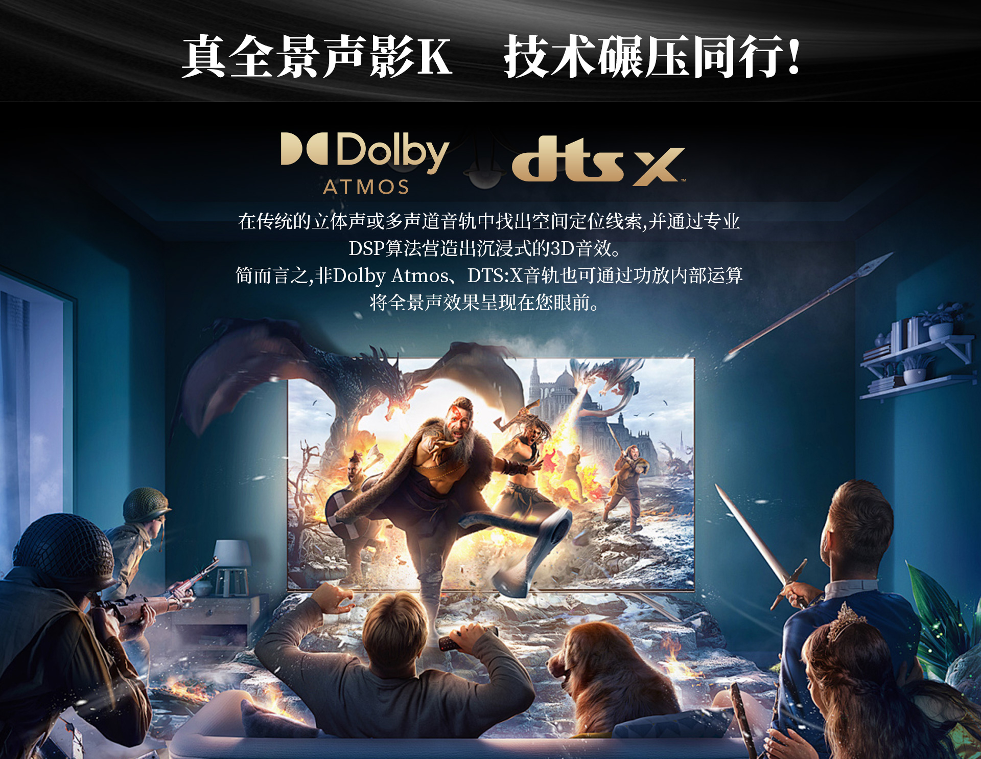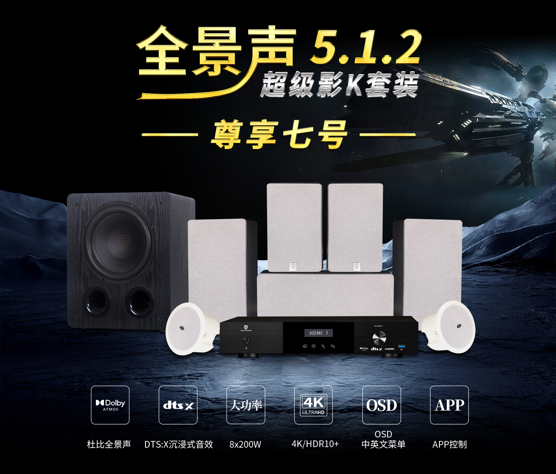 三、聲音特點 尊享七號的5.1.2全景聲影K系統通過構建360°三維立體空間,打造全方位包裹感,讓人沉浸其中。各聲效定位精準、層次分明,戰爭片中爆炸、建筑坍塌等大動態場景的駕馭都游刃有余、低頻下潛深厚且富有彈性,中頻人聲保持清晰有力通透質感,金屬的摩擦聲、玻璃的脆裂聲等環境音處理更是細膩真實,每個細節都能夠勾勒出強烈的畫面感,構建出極具沖擊力、沉浸真實的觀影現場。