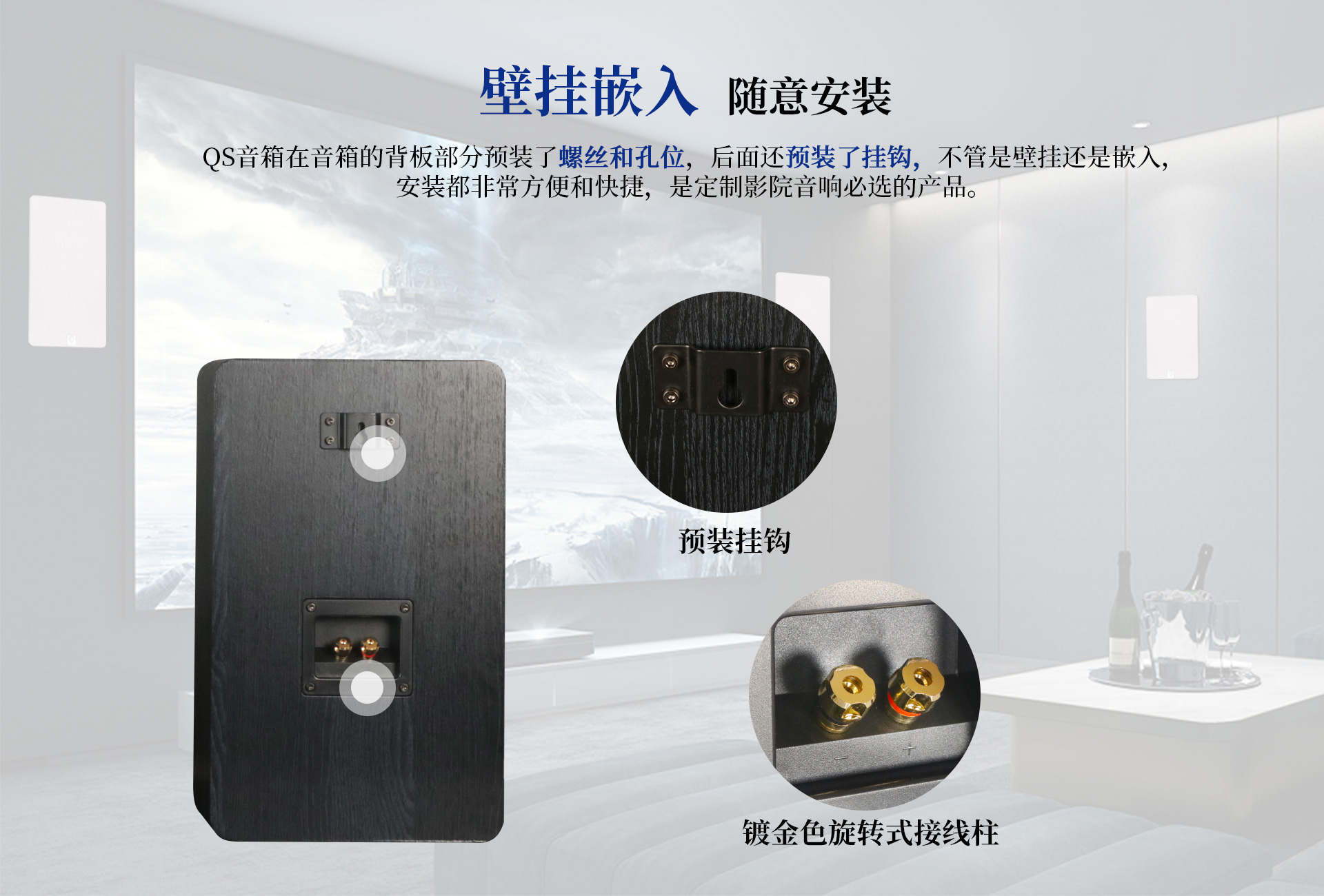 一、外觀特點 尊享七號以沉穩雅黑為主,質感內斂高級。主機功放造型纖薄精巧,搭配的QS音箱外形簡約盡顯格調,整體設計契合現代輕奢家居美學,適配客廳、試聽室、臥室等多種場景,讓品質生活觸手可及。