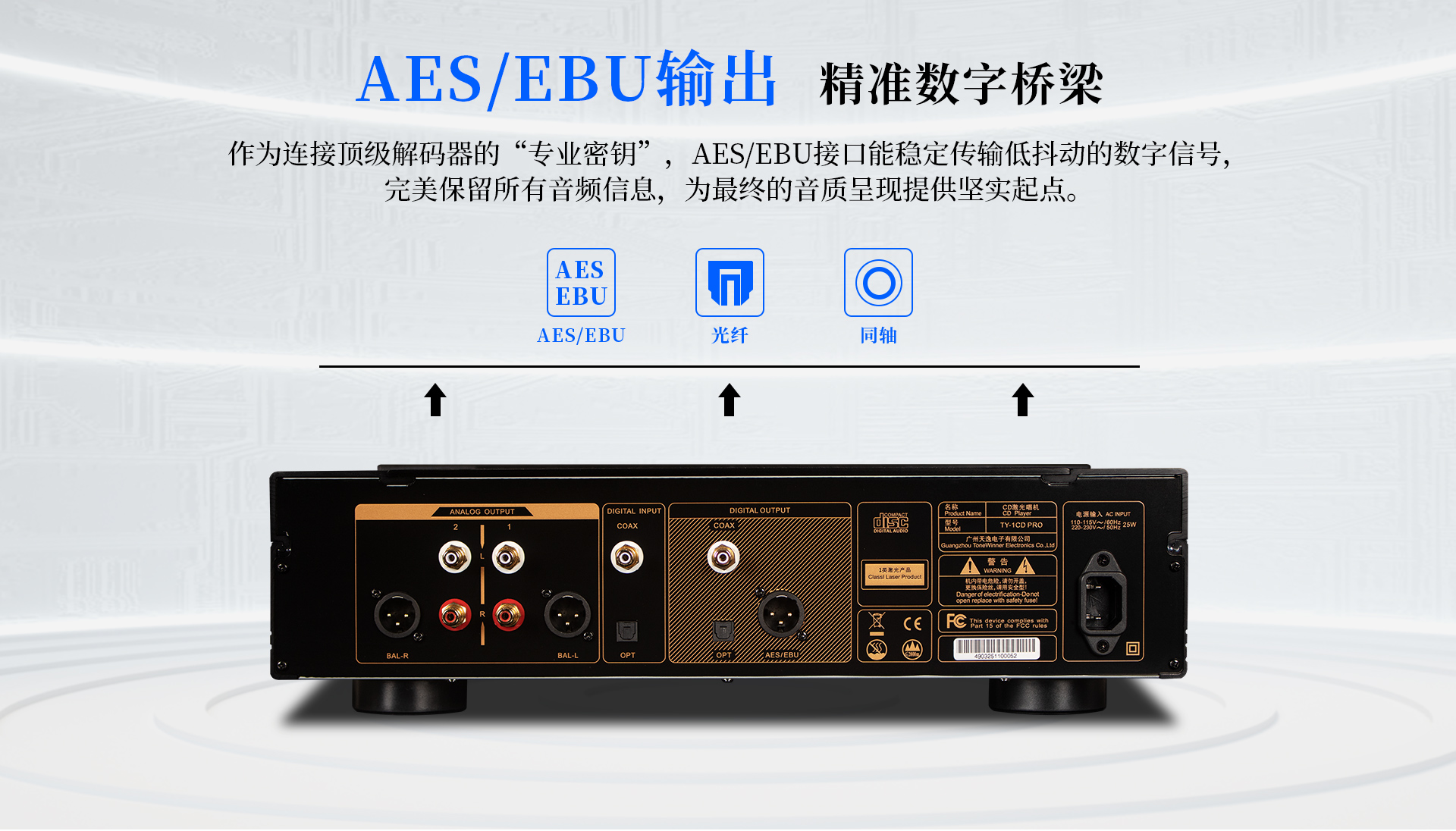 | 產品型號:TY-1CDPRO | 信噪比:≥123dB(A計權,BAL out) |