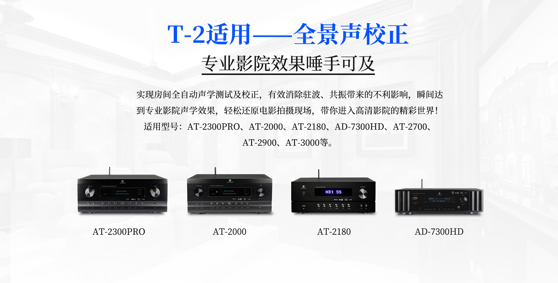 T-2適用于AT-2000、AT-2180、AT-2300、AD-7300HD等全景聲影K功放。