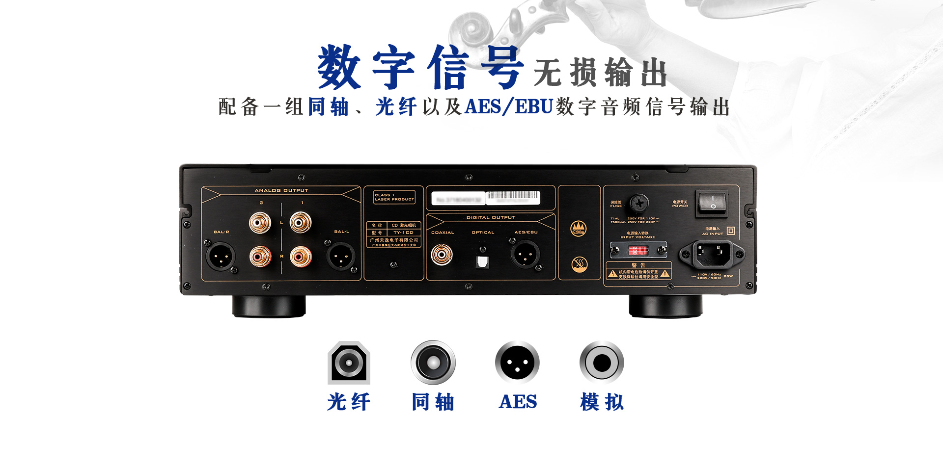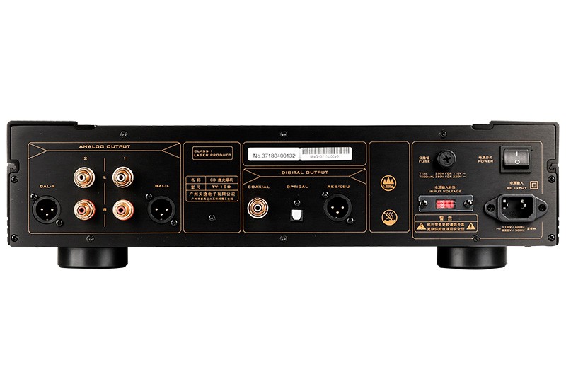 三、功能特點 為滿足音響玩家對CD機更高級的玩法,TY-1CD的輸出部分特別提供了模擬輸出、數字輸出兩部分。 模擬輸出部分包括兩組非平衡輸出和一組真正的全平衡立體聲模擬音頻輸出,這三組模擬輸出端都有群體延遲最佳化的類比輸出濾波線路。音響高級玩家都知道,真正的全平衡輸出聲音要比非平衡輸出更通透飽滿,聲場也更加寬廣。在放大過程中,平衡傳輸利用相位抵消原理,將音頻信號傳輸過程中受到的其他干擾降至最低。 數字輸出部分包括一組同軸、光纖以及AES/EBU數字音頻信號輸出。AES/EBU輸出端口并不常見,只有少數Hi-End級數的CD機才配備,通過該接口,各種數字音頻設備可以相互交換數字音頻數據、定時信息、控制信息等,且該種傳輸方式抗干擾能力極強,為后端功放設備提供更佳的表現力。