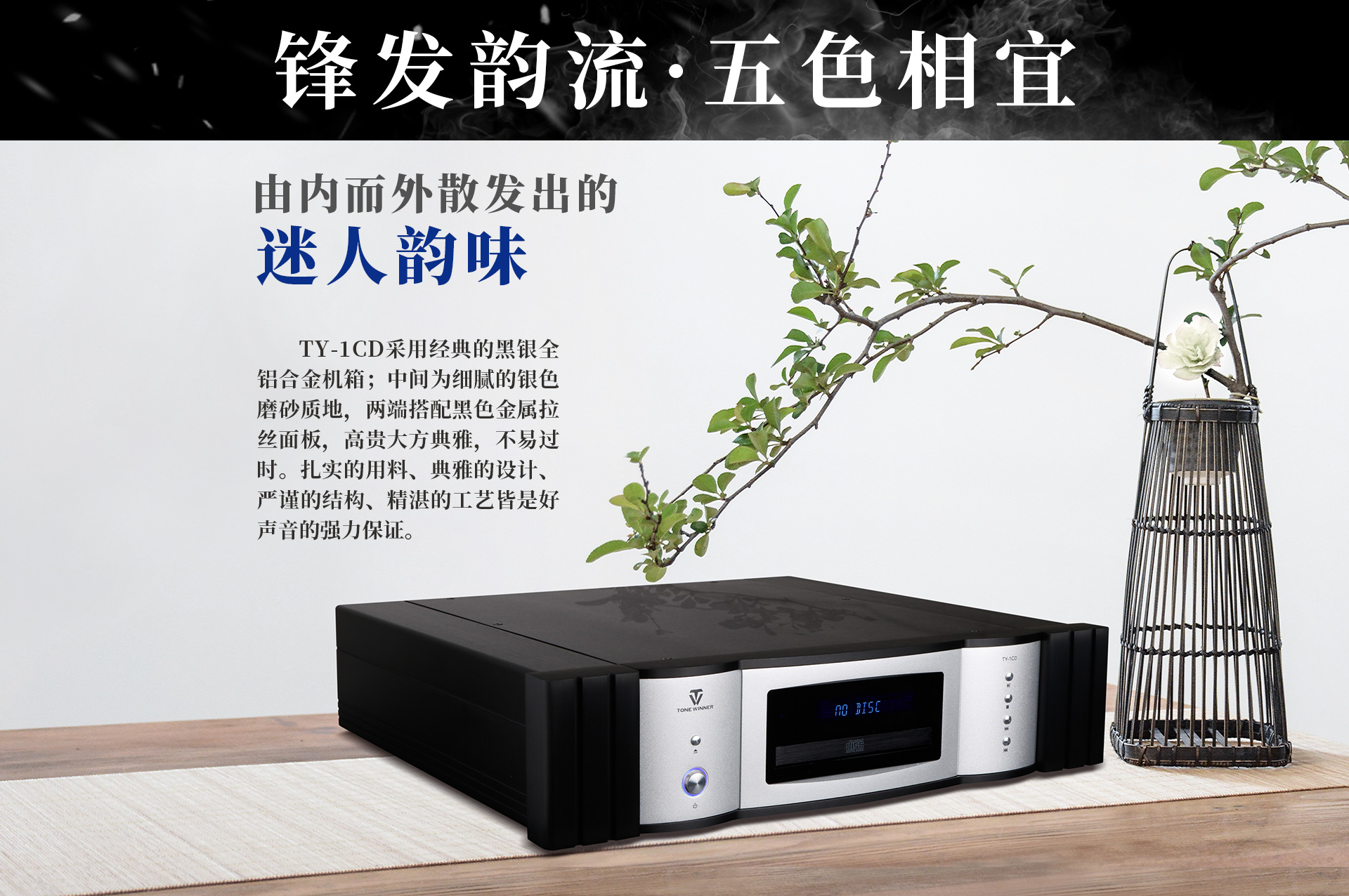 四、聲音特性 搭配天逸的旗艦Hi-End前后級AD-1PRE/AD-1PA,其寬闊宏大的聲場、清晰準確的定位、立體分明的層次,猶如流動的壯麗的音樂畫卷。其三頻均衡,高頻干凈細膩,甜美迷人,泛音綿長,宛如脈脈春風;中頻厚實,質感綿密,量感充沛且膽味濃郁,解析力極強,音樂細節豐富絢麗;低頻剛勁有力,收發自如,下潛深不見底。 總而言之,TY-1CD聲音表現剛柔并重,既有通透的超高解晰力,又有濃郁的膽味,聲底甜美迷人,讓人有“潭中魚可百許頭,皆若空游無所依。”的怡然之樂之美。
