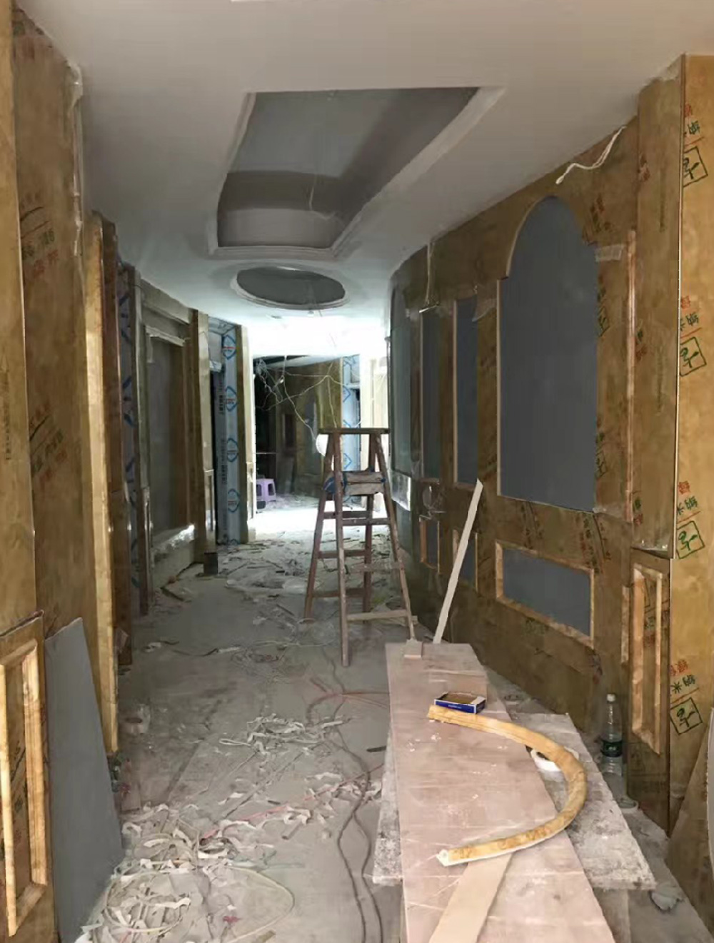 內部裝修及包廂空間處理: 多元化、綜合性是“皇家貴足”的經營理念,但多元化不能以犧牲專業為代價,所以該分店投資人要求每一個房間觀影、K歌、洗浴、休閑、娛樂都要專業,既要有震憾的音效,也要有優秀的畫質,更要有“皇家貴足”一慣的宮殿般享受,確保在洗浴,休閑之余在觀影和唱歌都能有專業影院,專業KTV的體驗。為此,老板請來億澤祥專業的設計團隊進行了房間的設計,從房間大小,長寬比例以及吸音材料使用都嚴格按照科學的原理進行實施;為高清電影發燒友們提供一個絕佳的觀影場所。
