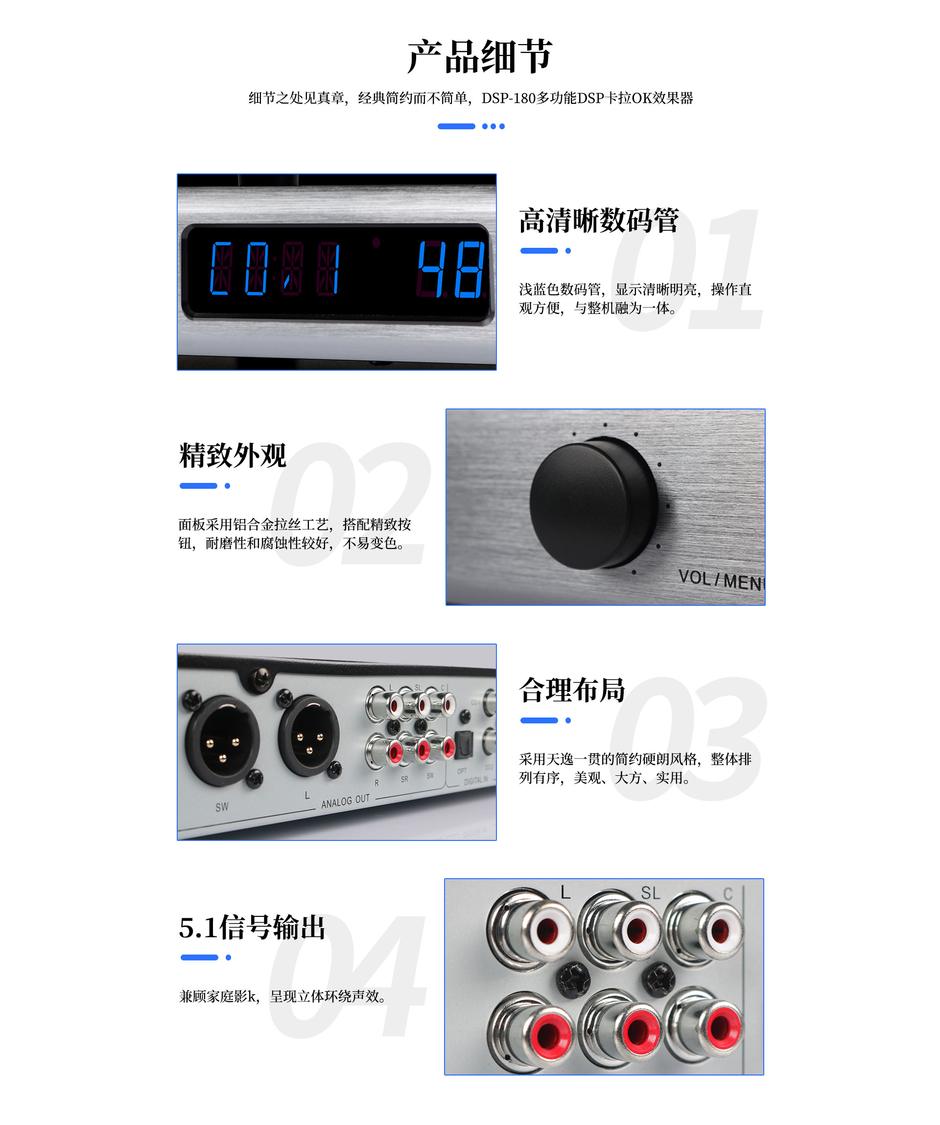 6. 專業(yè)級(jí)的5.1全平衡輸出端口,滿足更加專業(yè)的場(chǎng)所使用。
