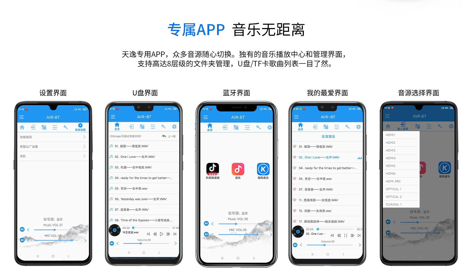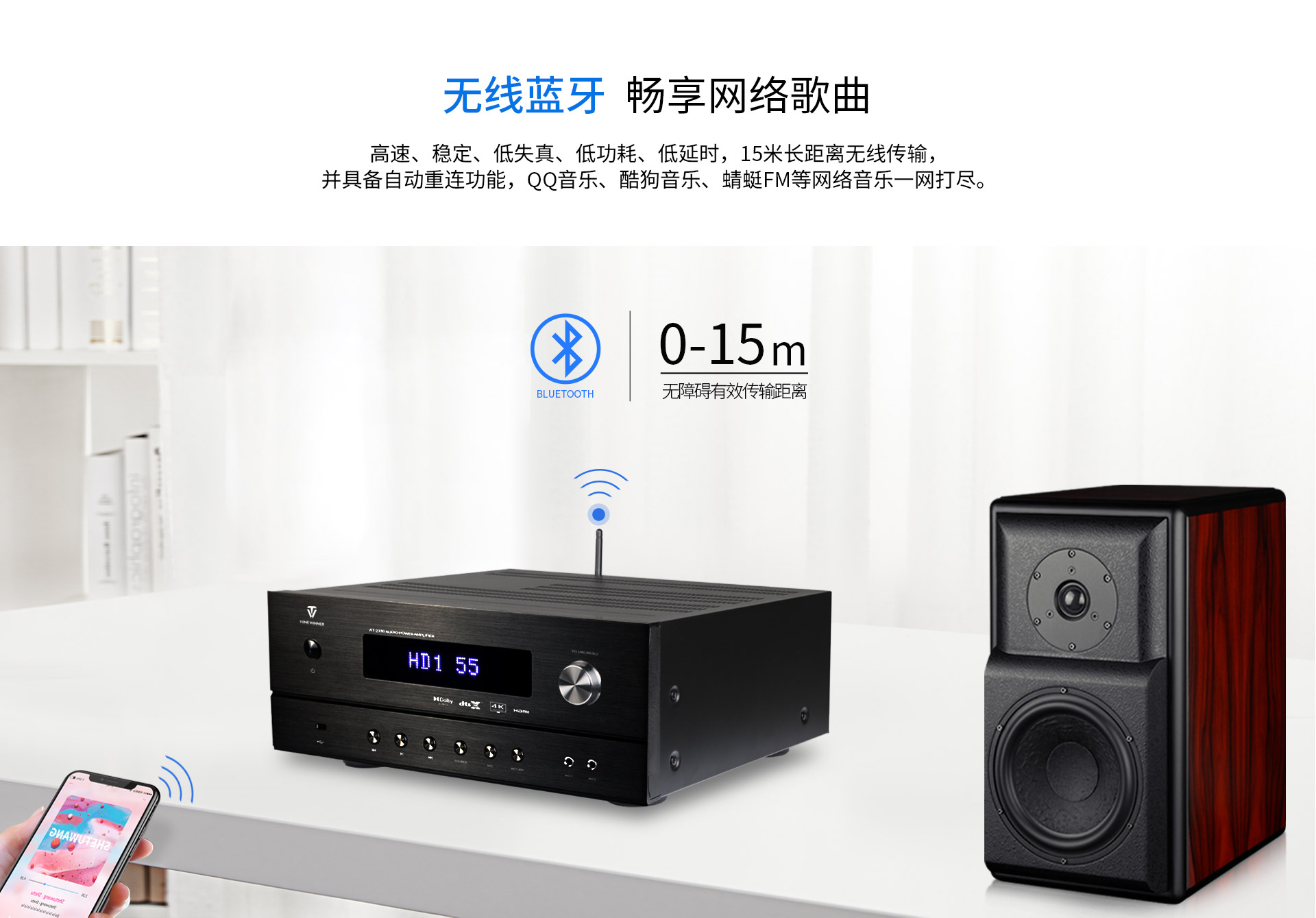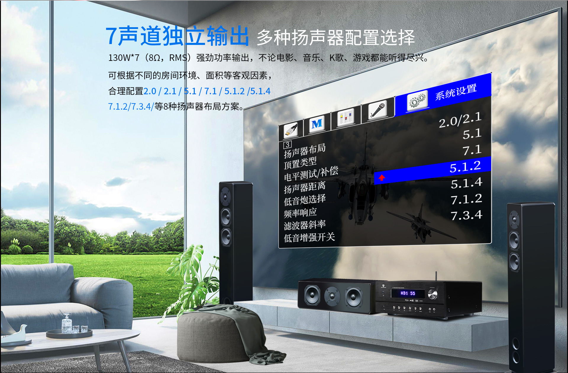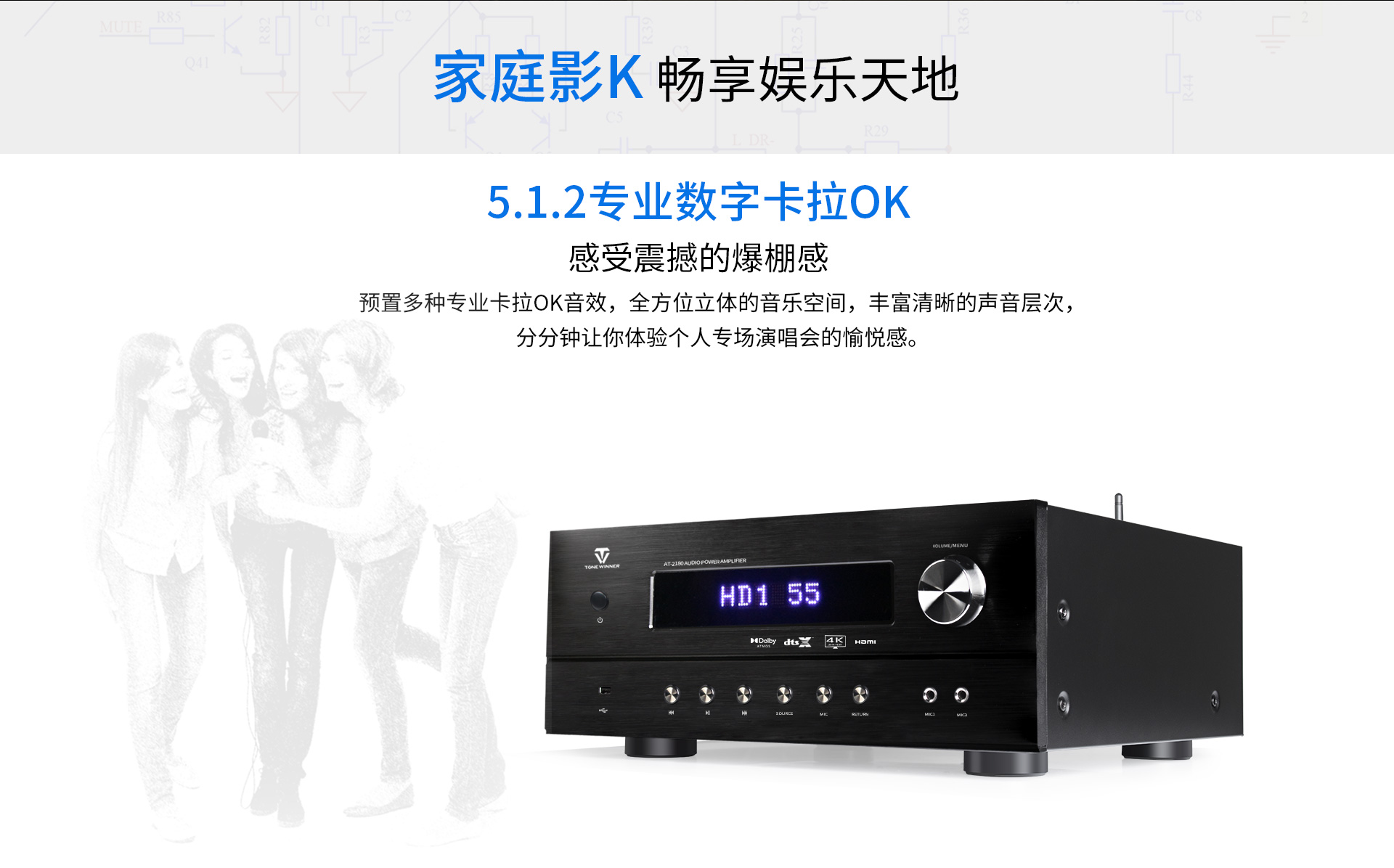 三、功能特點 1.支持Dolby Atmos、DolbyTrue-HD等所有杜比無損及有損壓縮音頻編碼文件;支持DTS:X、DTS-Master等所有DTS無損及有損壓縮音頻編碼文件。 2.支持4K/60Hz,RGB 4:4:4,18GHz全帶寬視頻信號,支持Dolby Vision及HDR 10視頻信號。 3.支持HDMI2.0,支持HDCP2.2。 4.多達14聲道的全景聲7.3.4音頻解碼線路輸出。 5.內(nèi)置全景聲卡拉OK系統(tǒng),強大的DSP數(shù)字混響效果及九級防嘯叫移頻處理技術(shù),多種人聲風(fēng)格選擇。 6.房間EQ、揚聲器距離、延時、聲壓的自動測試及補償,一鍵式操作,全自動校正,同時支持用戶手動調(diào)節(jié)。 7.內(nèi)置藍牙數(shù)字音頻接收器。 8.內(nèi)置高品質(zhì)音樂播放器播放器,支持TF卡及U盤音頻文件播放,支持FLAC、APE、WAV、MP3等多種無損及有損壓縮音頻格式,支持多層文件夾管理。 9.支持手機APP操作。 10.支持全中文疊加式OSD屏幕顯示菜單。 11.支持本地音樂信息手機及電視可同步讀取顯示。 12.支持從2.0聲道到7.3.4聲道等8種揚聲器配置。 13.支持HDMI 4進2出,2組同軸2組光纖數(shù)碼音頻輸入,3組模擬音頻輸入。 14.支持5.1聲道外部混音輸入,可外掛混響器。 15.支持RS232集中控制器。 16.支持HDMI ARC音頻回傳,支持CEC控制。 17.支持高達1000ms時長的唇音同步調(diào)節(jié)。 18.每聲道多達5~11段參數(shù)EQ。 19.支持音視頻混搭編組。 20.支持按輸入源獨立設(shè)置及保存參數(shù)的功能。輸入源獨立EQ選擇,獨立卡拉OK控制。 21.支持話筒音量及音樂音量的開機設(shè)置和最大音量限制。 22.多種常用功能一鍵調(diào)用。 23.內(nèi)置全球五大測試系統(tǒng)之一——ETQ房間聲學(xué)自動測試校正軟件。 24.支持USB-AUDIO數(shù)字信號輸入功能。 25.支持IR紅外延長功能(需額外購買紅外延長器,延長器無需獨立供電)。 26.支持5V連機觸發(fā)功能。 27.支持工程鎖機。 28.支持整機參數(shù)備份及調(diào)用。 29.支持一鍵恢復(fù)出廠設(shè)置。 30.支持用戶參數(shù)保存及調(diào)用設(shè)置。