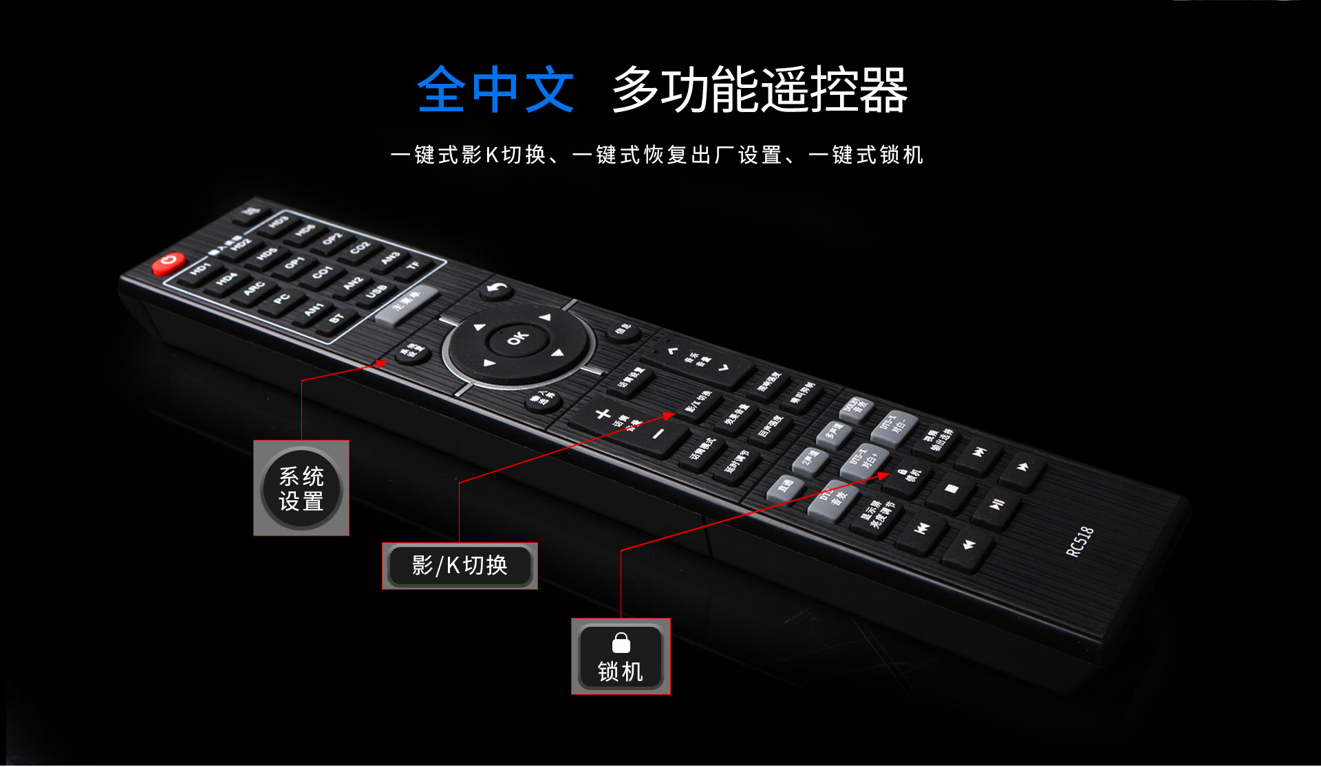 | 包裝尺寸:545x491x257mm | 套裝配件:說明書x1本遙控器x1個HDMI線x1條 合格證x1張電池x1對 兩芯電源線*1條 |