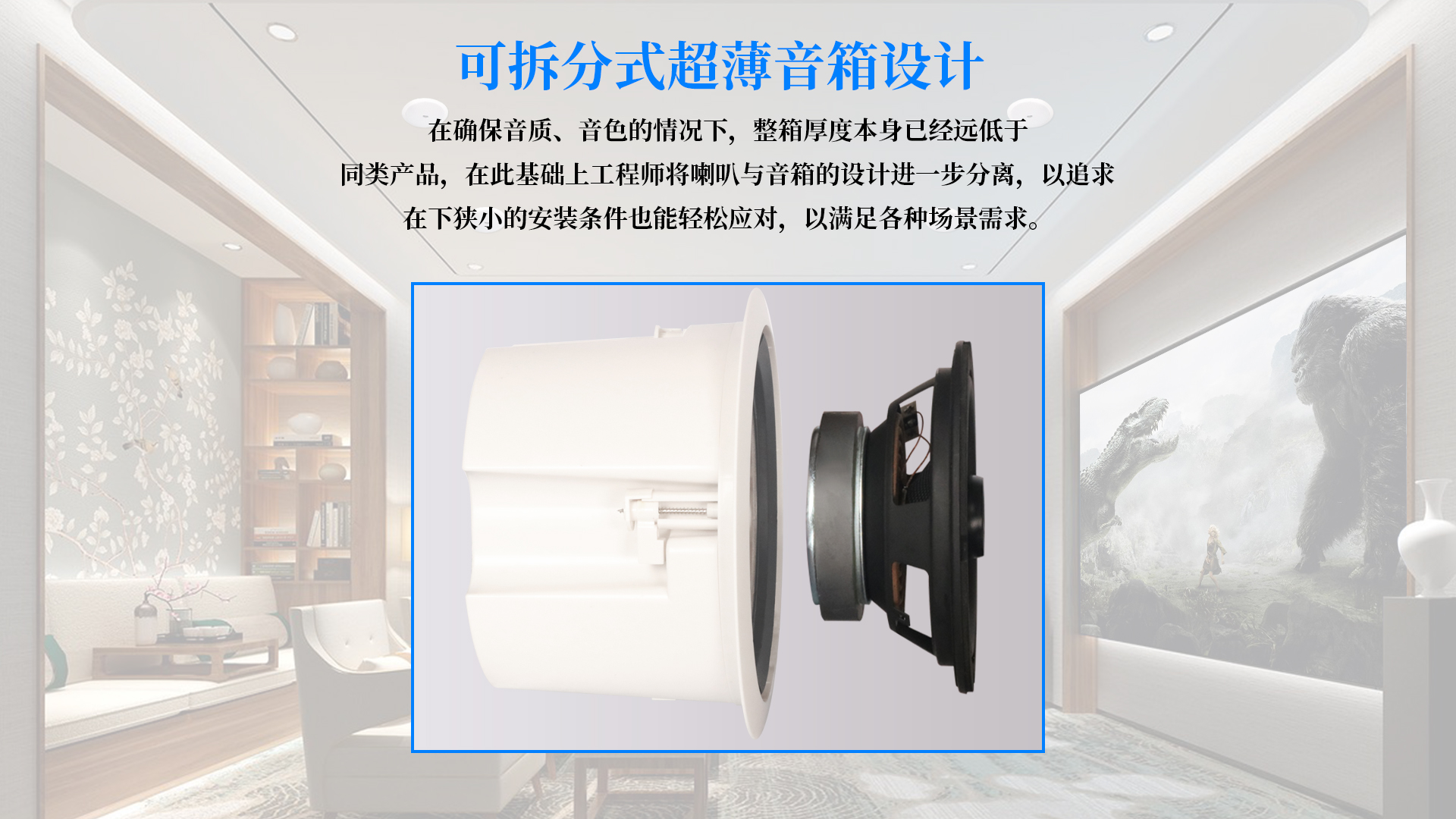 QS系列音箱外觀纖薄輕盈,簡約時尚,外形美觀,工藝細(xì)膩精湛,輕易的與裝修風(fēng)格融為一體。