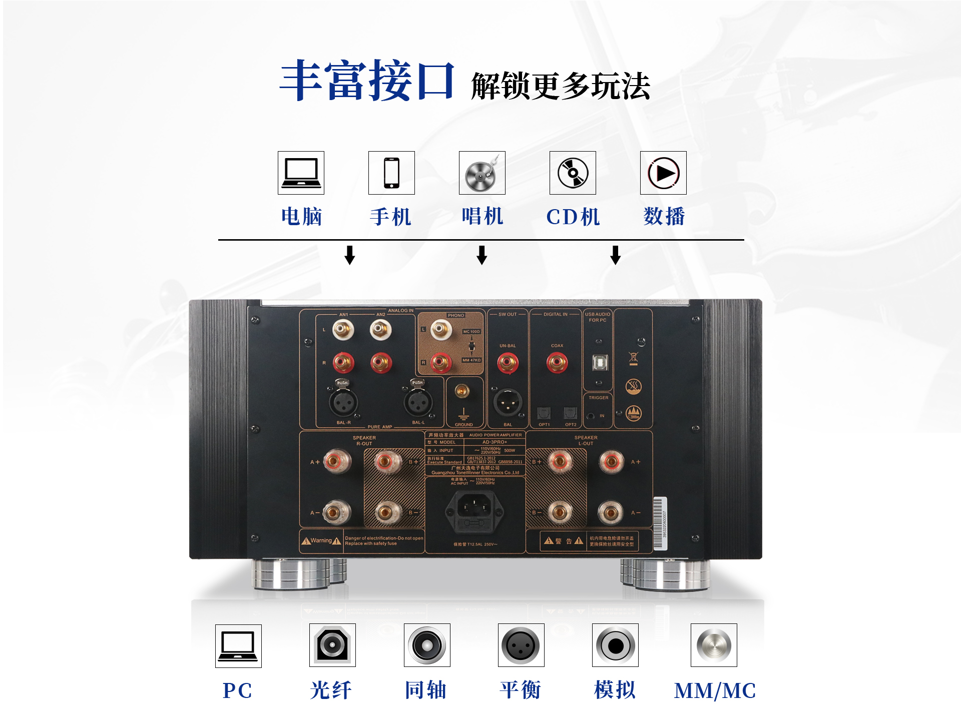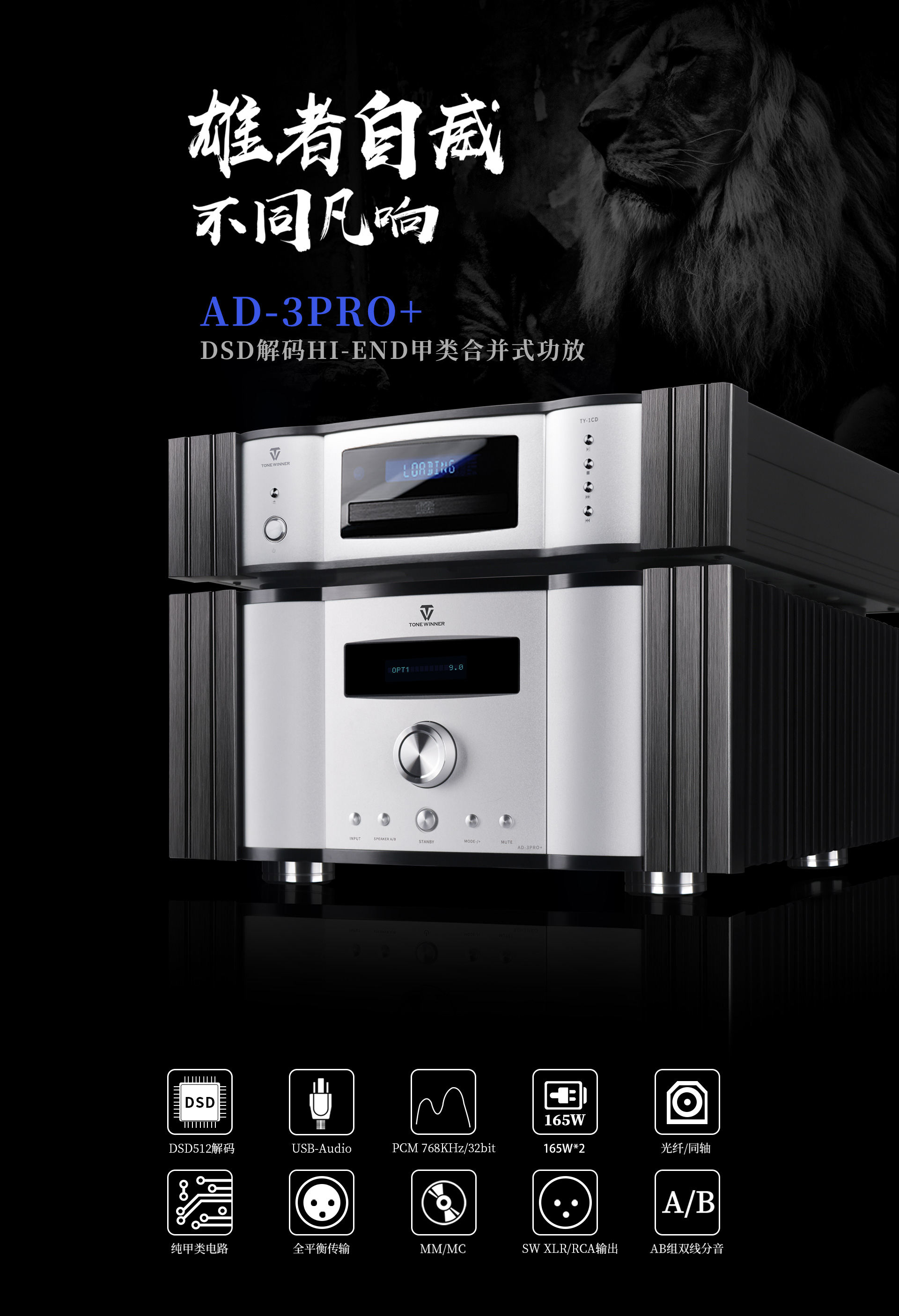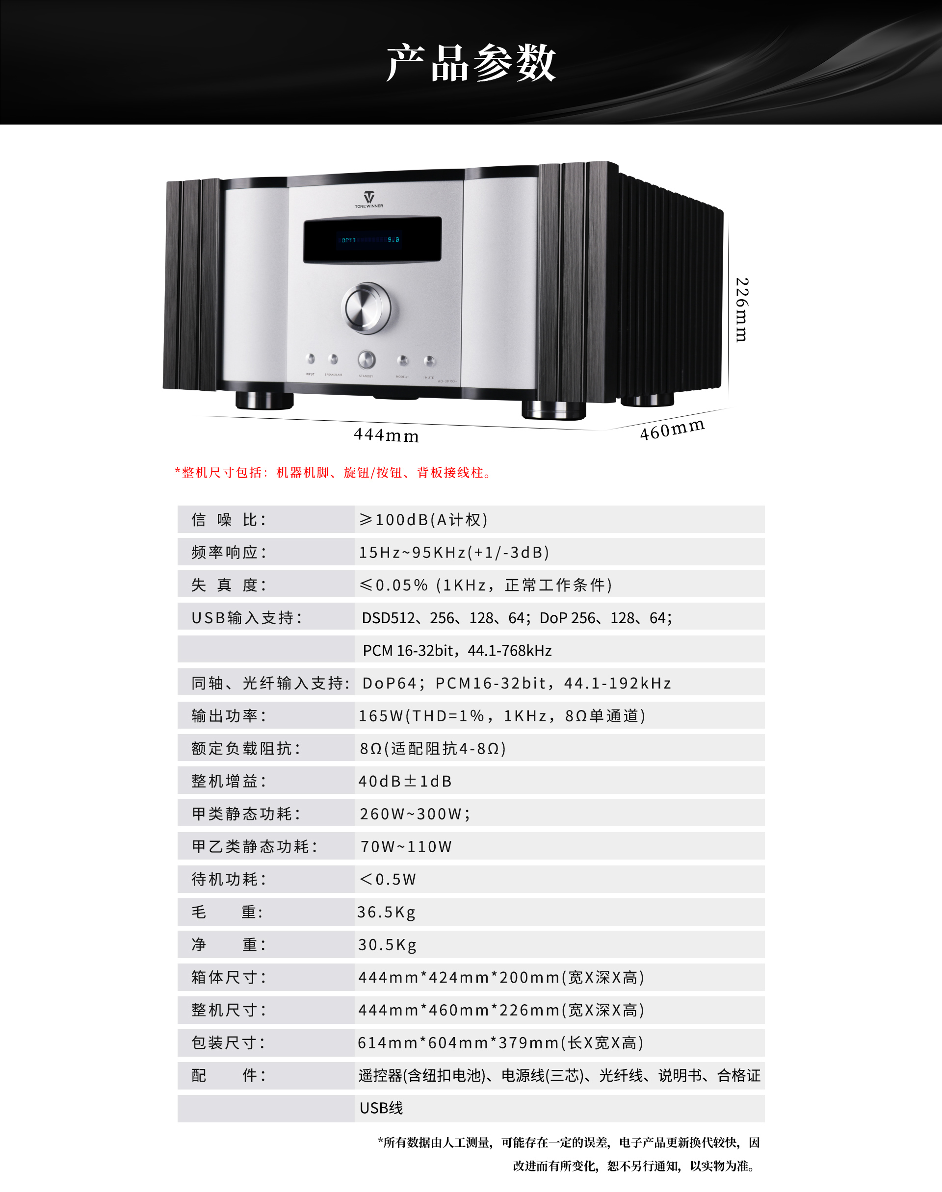 產品型號:AD-3PRO+ 輸出功率:165W(THD=1%,1KHz,8Ω單通道)