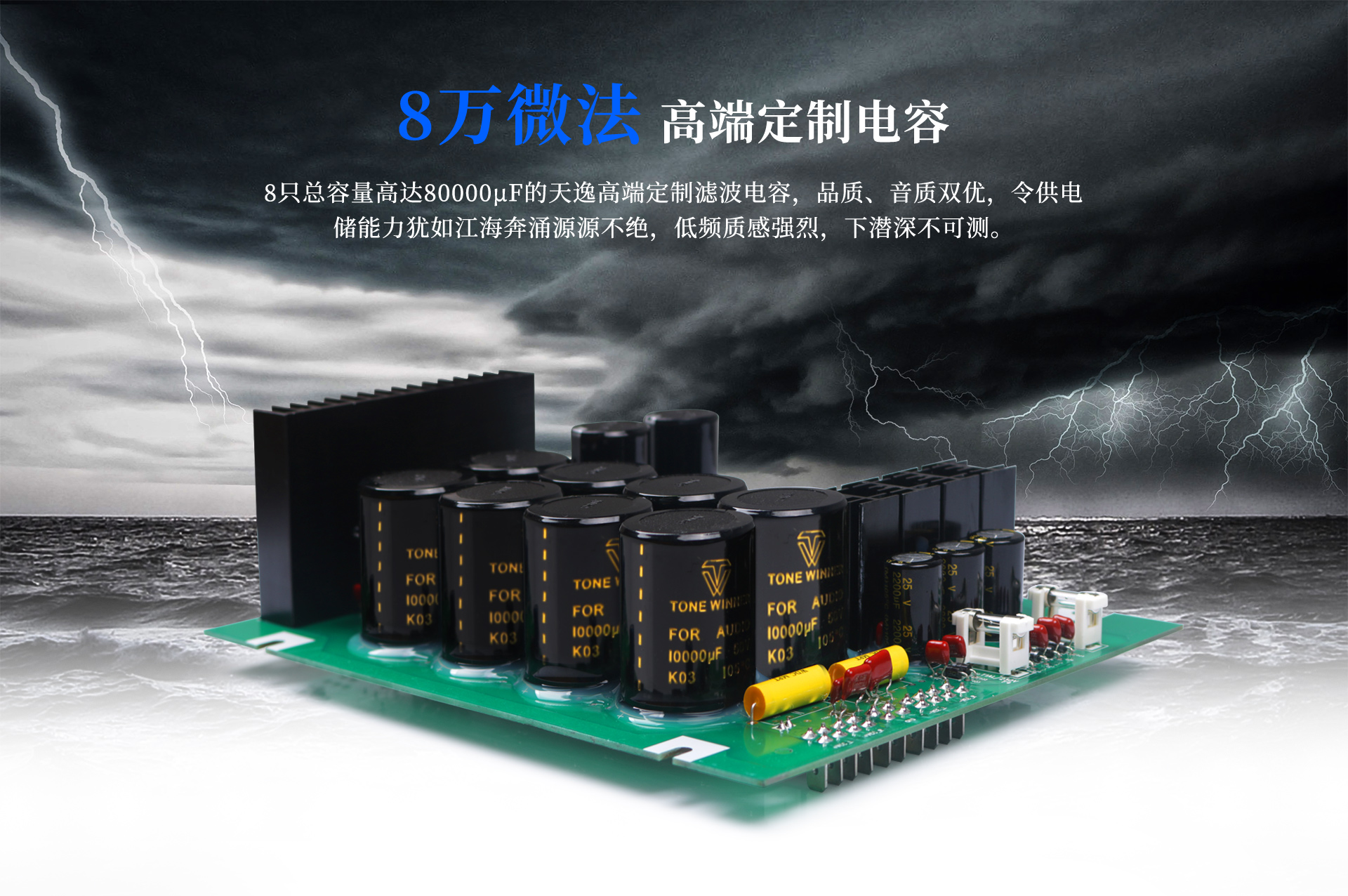 7、采用了一只600W高品質環牛,高達8萬微法音頻專用定制電容,大功率音頻專用名管并聯輸出,提供極大電流輸出能力;