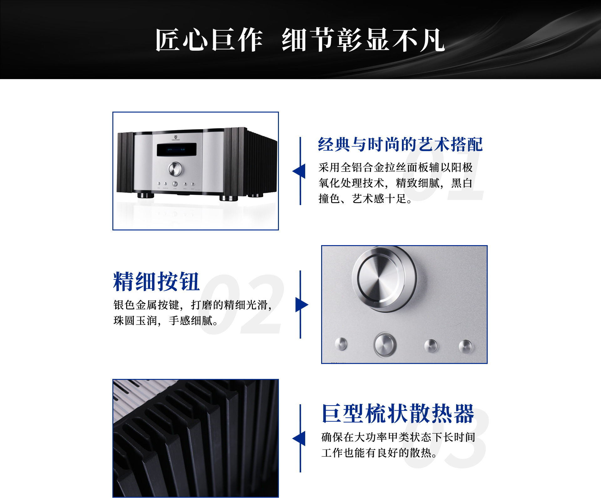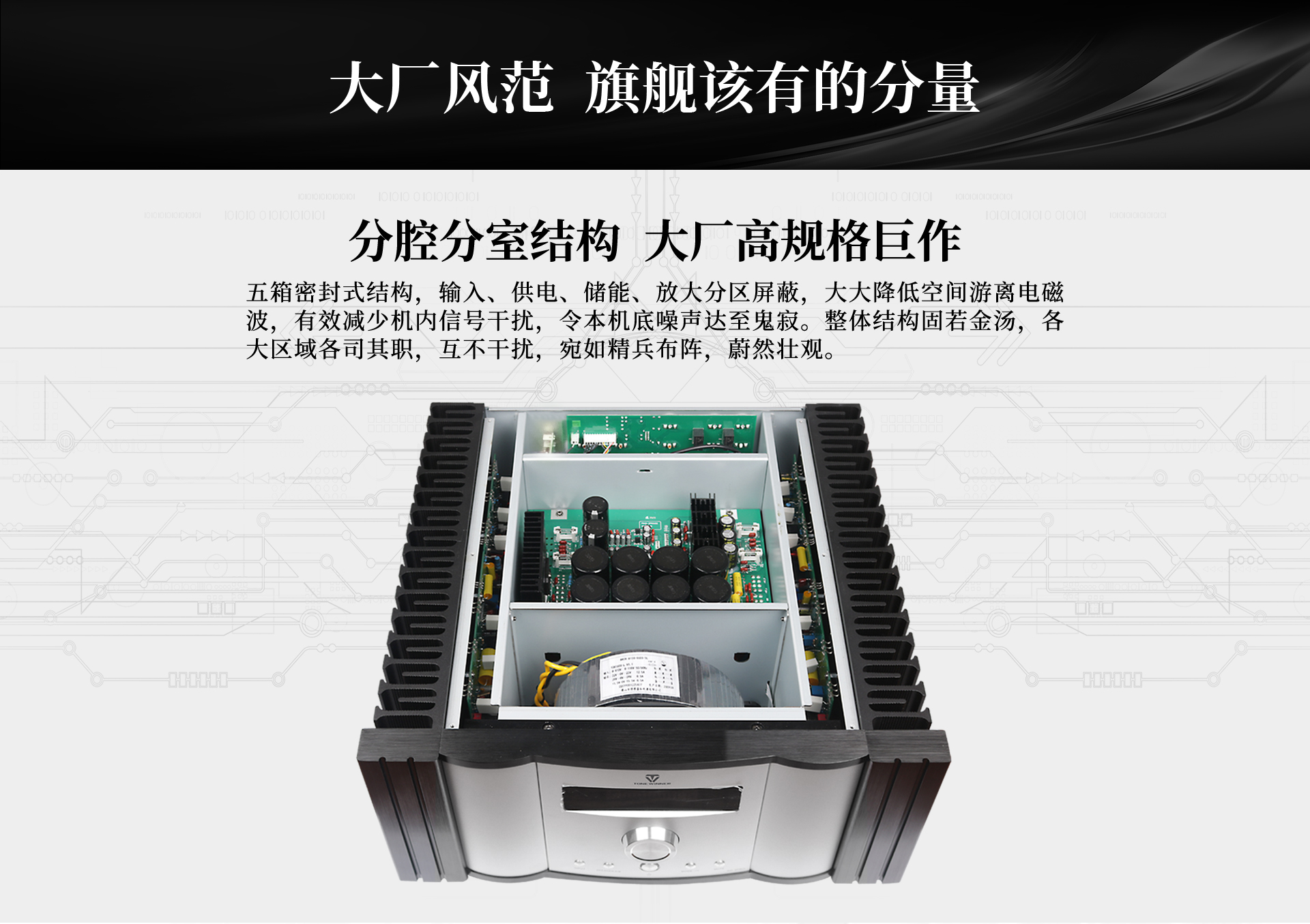 6、功放前后級采用前高后低的供電方式,更充分發揮線路優點,令整機性能進一步提升;