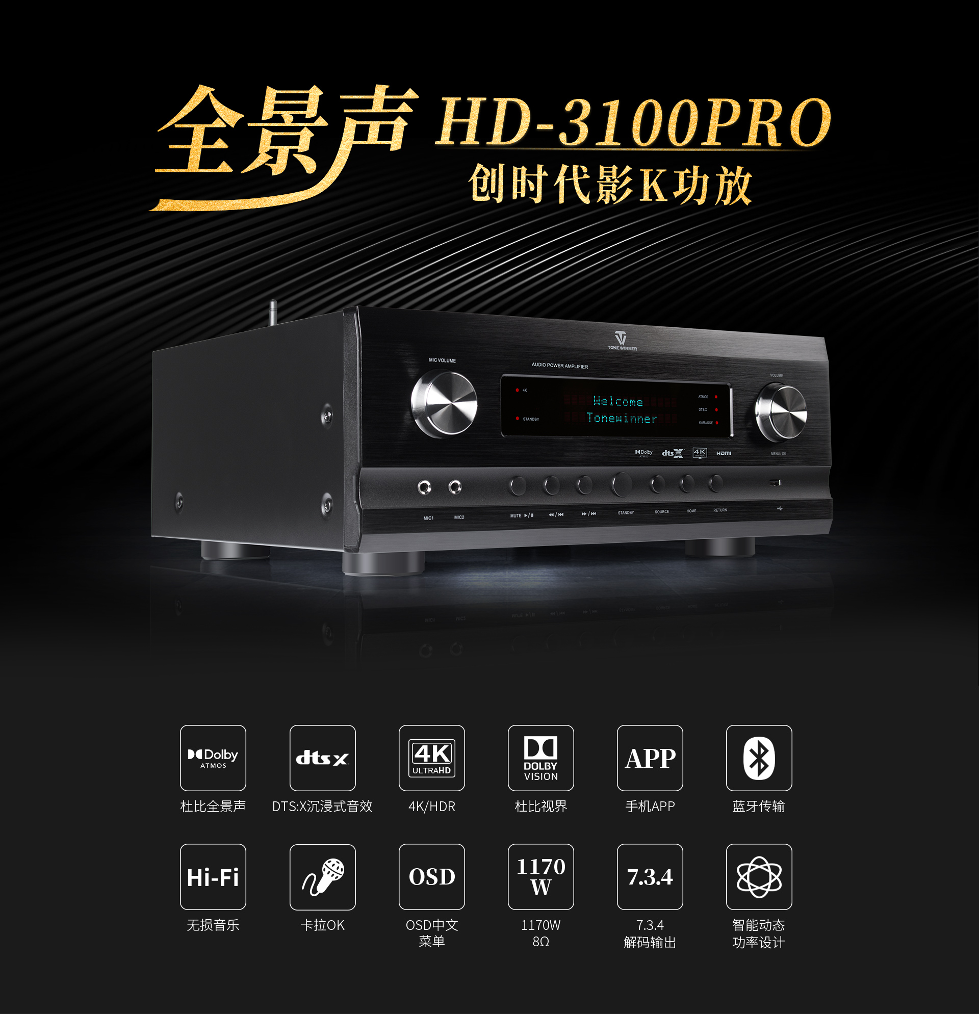 | 產品型號:HD-3100PRO | 解碼輸出:7.3.4 |