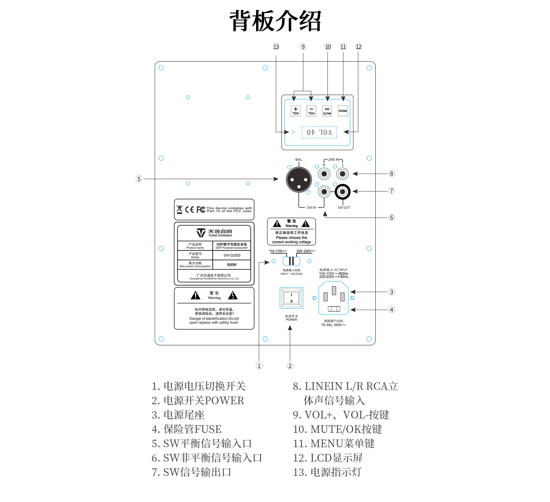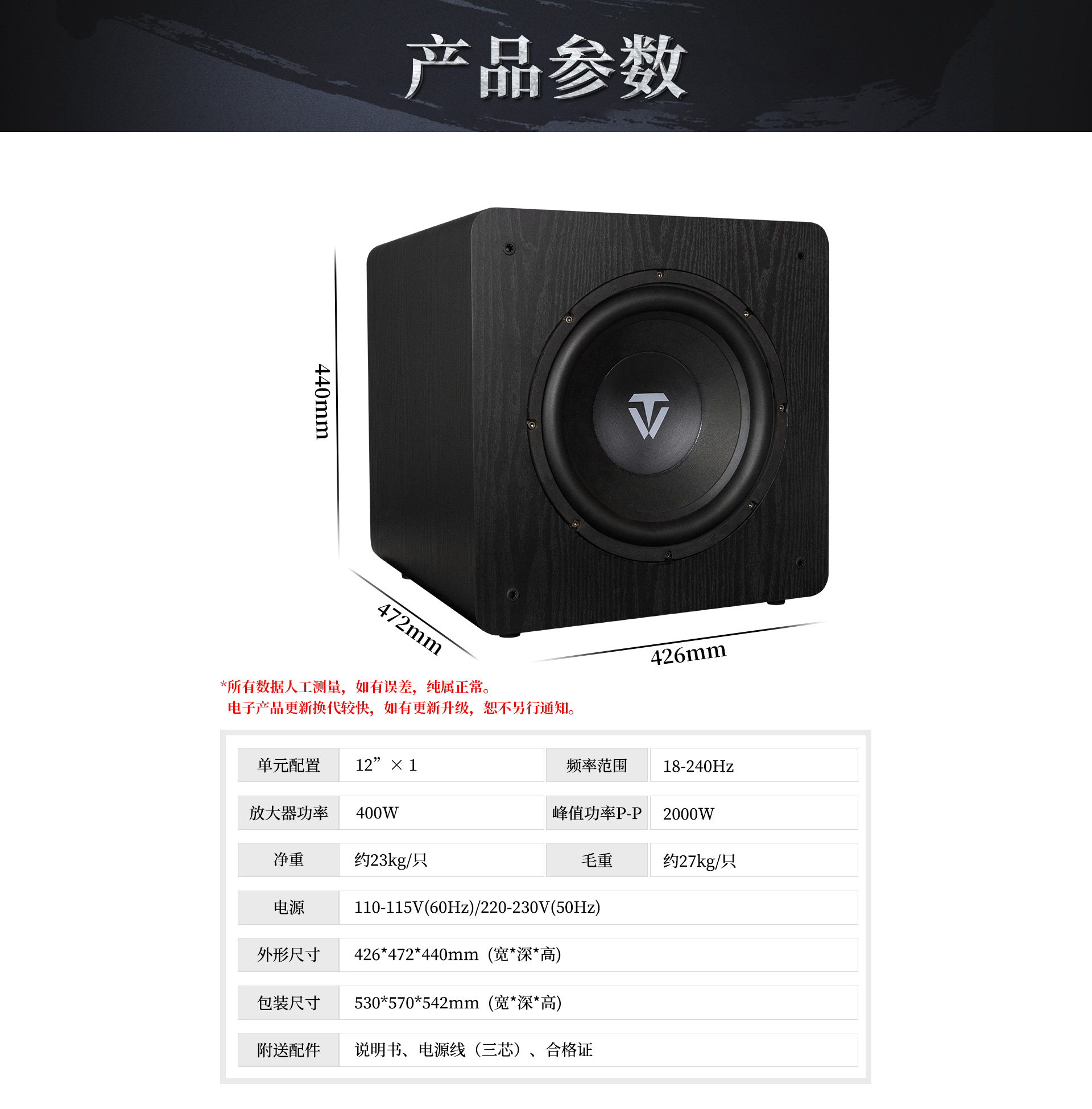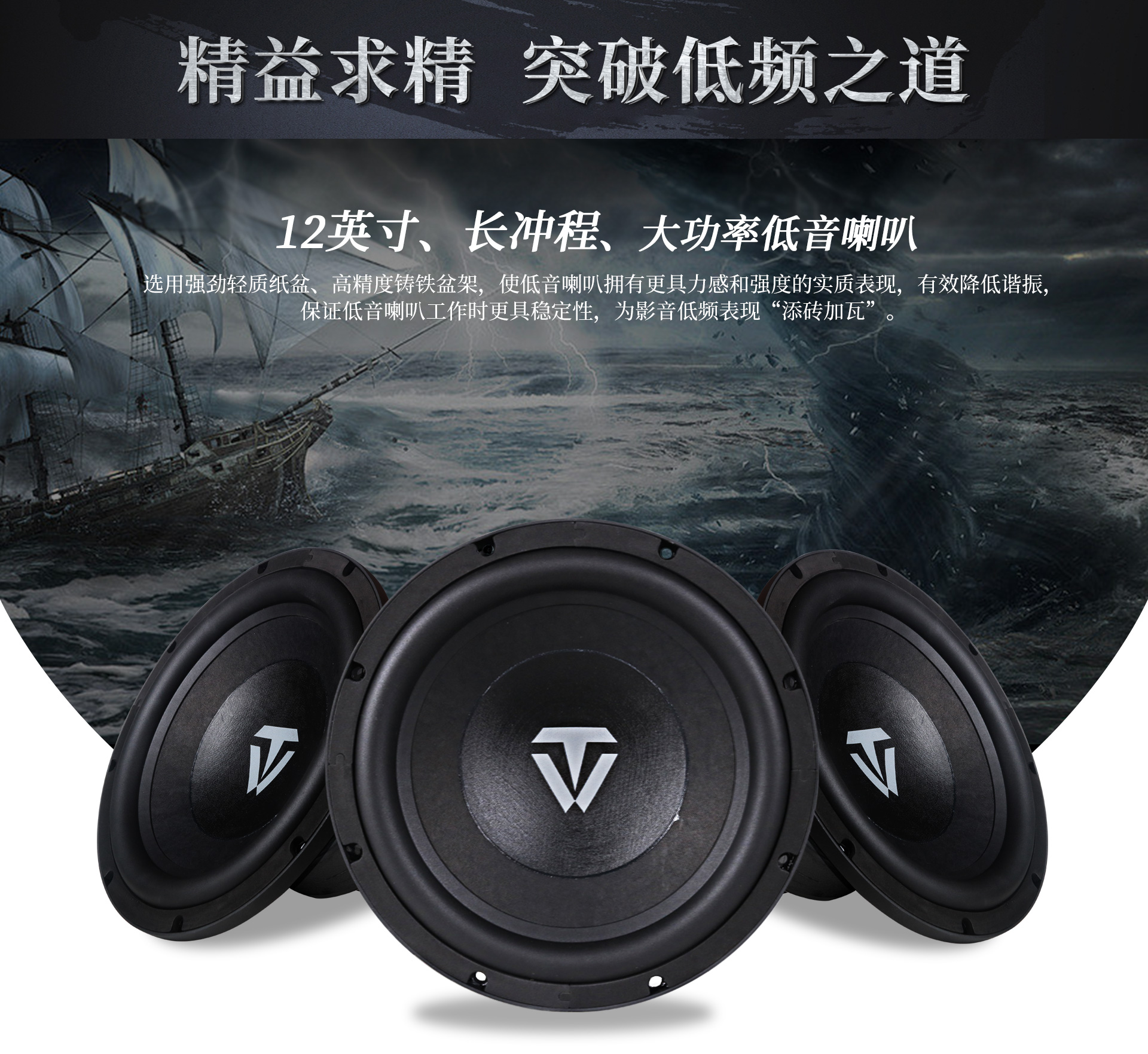 9. 12英寸、長沖程、強磁、大功率喇叭單元,具有低失真、高動態長沖程等特點;
