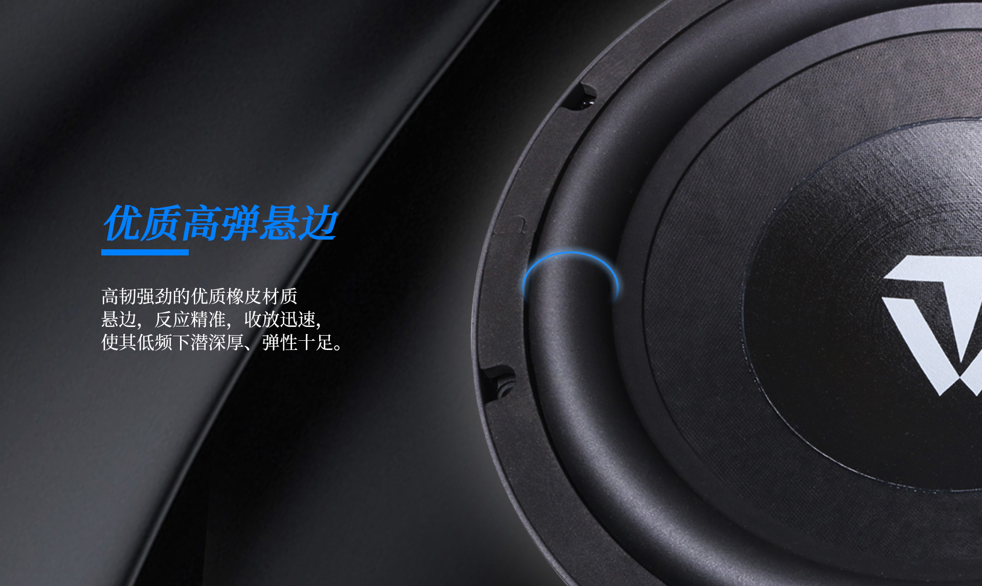 2.優質高彈懸邊,一體成型的高強度鑄鋁盆架,半松壓音盒。