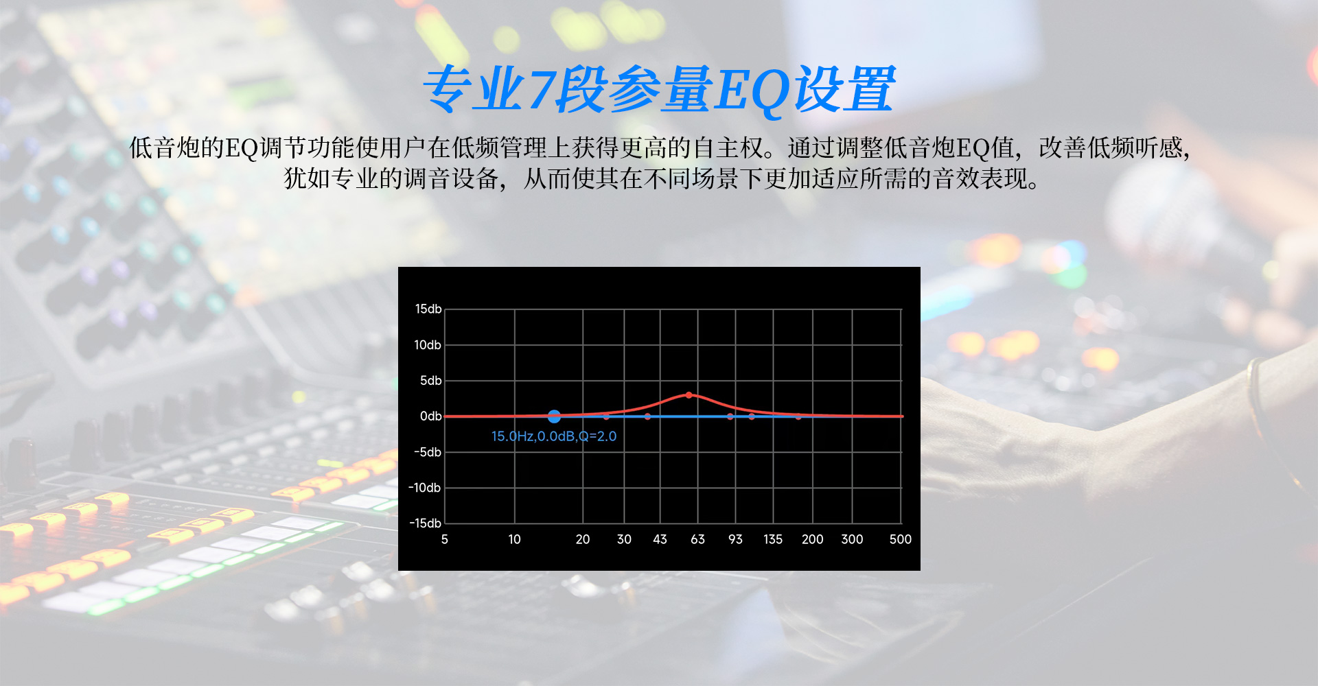 1. 采用高效低噪D類放大電路,內置DSP數字處理器,7段參量均衡 (EQ) 任意調節