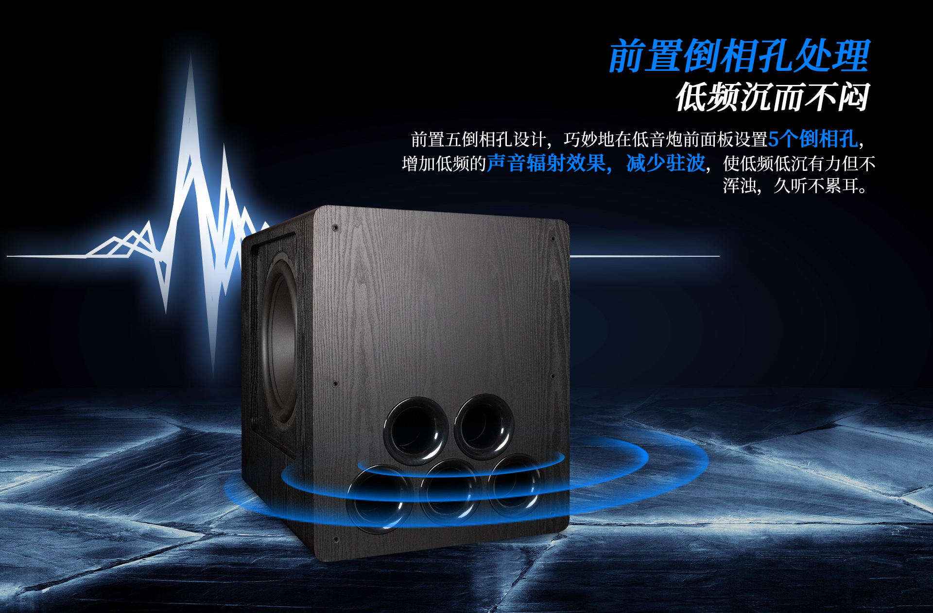 13. 前置五個倒相孔,支持倒相箱、閉箱設計;