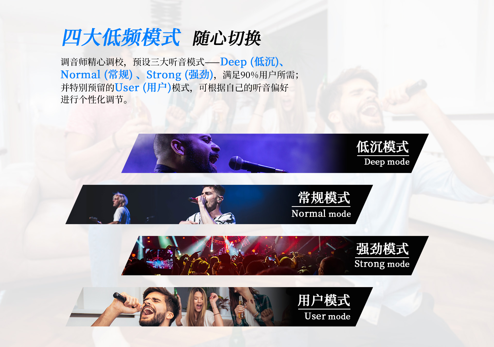 7. 四種低頻模式,根據聽音偏好進行個性化調節