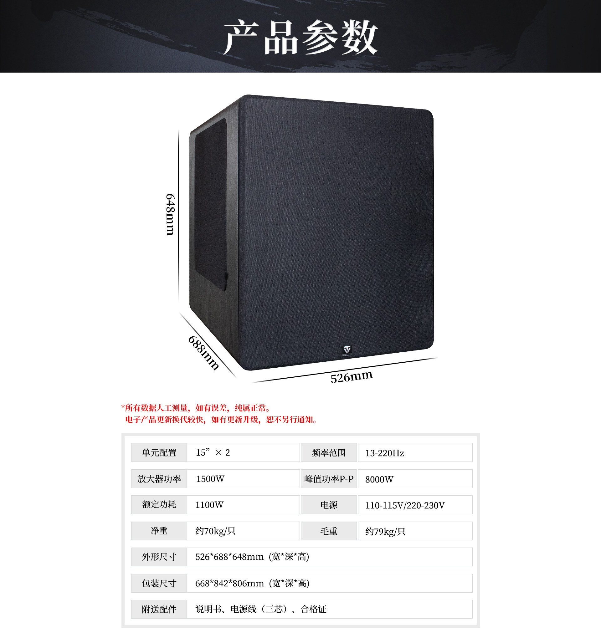 2. 15英寸、長沖程、強磁、大功率喇叭單元,具有低失真、高動態長沖程等特點;