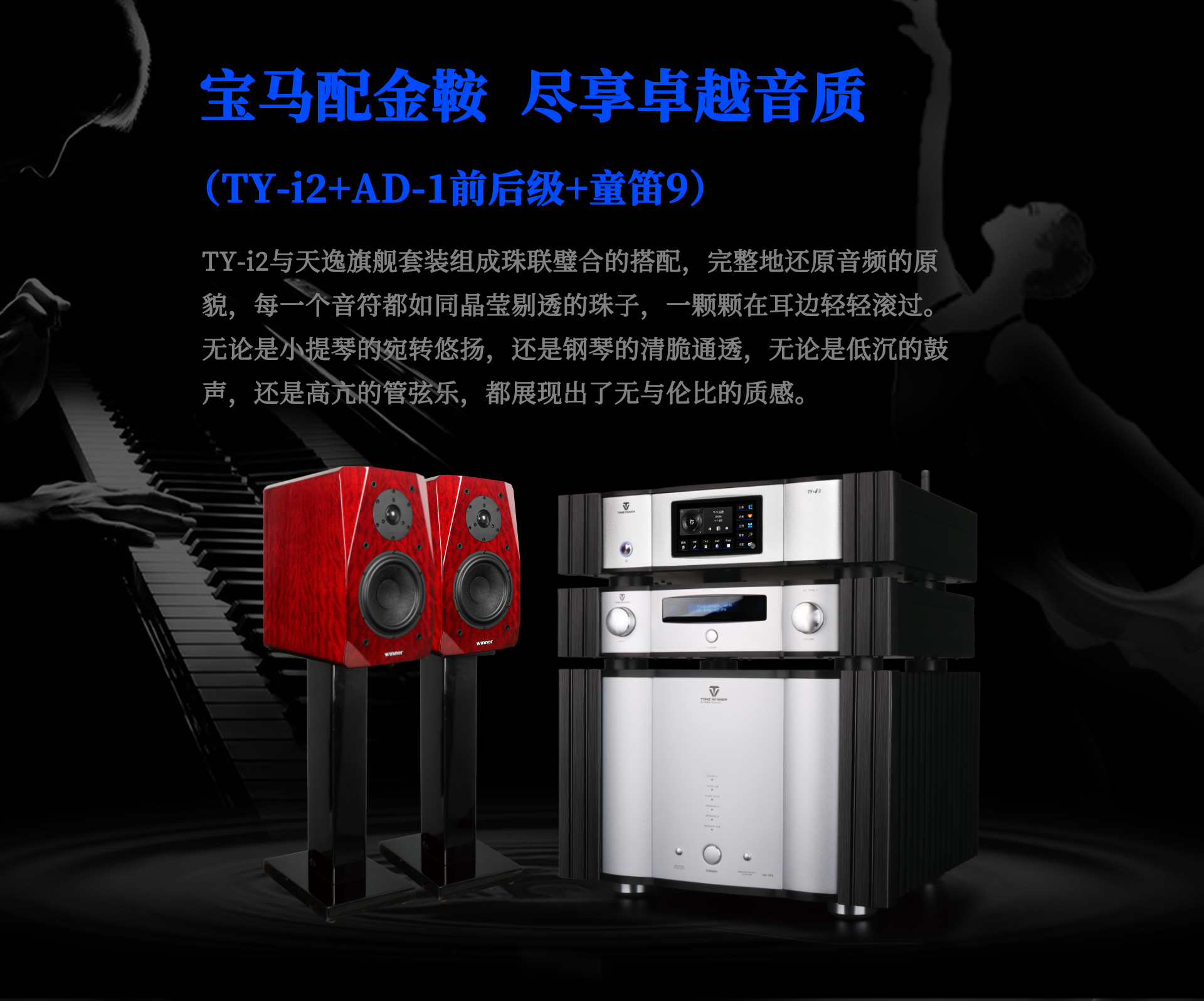 四、聲音特性 TY-i2與天逸的旗艦前后級AD-1PRE+、AD-1PA外觀風格一脈相承,其聲音風格更加契合。 這一組合營造出了一個既寬廣又深邃的聲場,其準確的聲音定位和立體的音層分布仿佛將聽者置于一個充滿活力且細節豐富的音樂世界。 三頻部分的表現尤為出色。高頻部分干凈而細膩,帶有一種甜美迷人的韻味,泛音悠長,就像春風輕撫,令人陶醉。中頻則顯得更為厚重,質感綿密,膽味濃郁,同時保持了強大的解析力,使音樂細節變得絢麗多彩。而低頻的表現強勁有力,展示出了極好的控制力和深邃的下潛能力。
