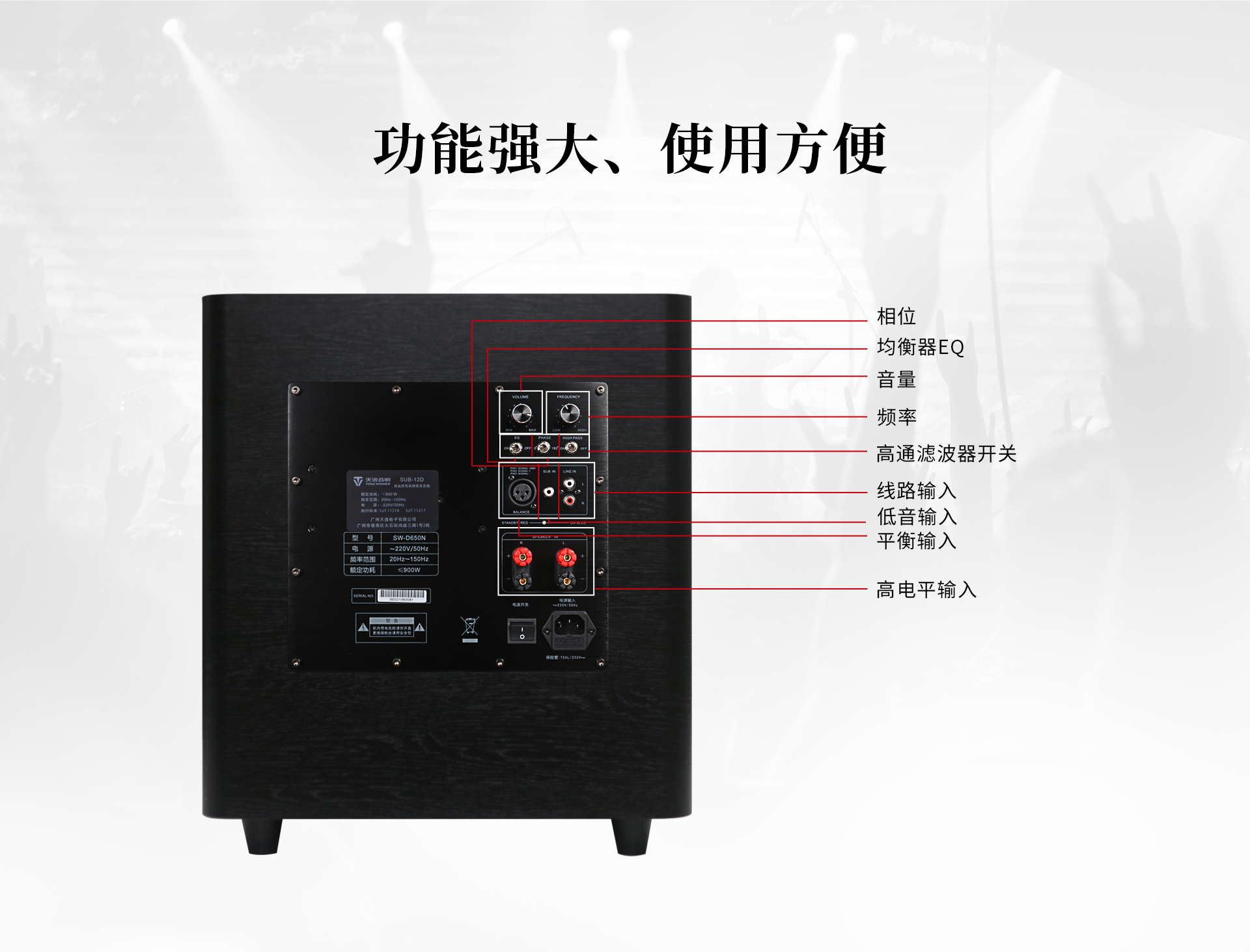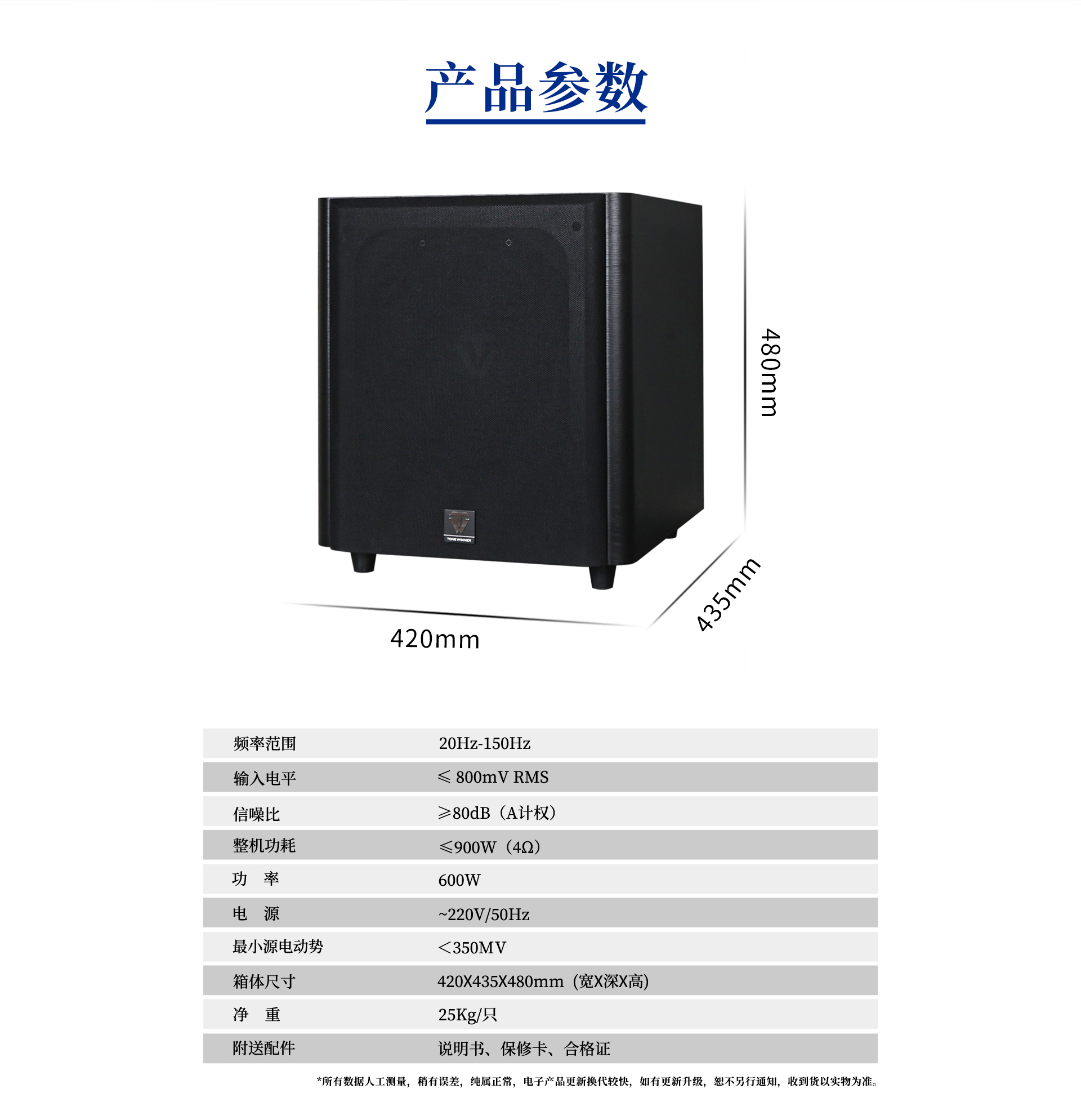 | 喇叭單元:12寸 | 頻率響應(yīng):20Hz-150Hz |